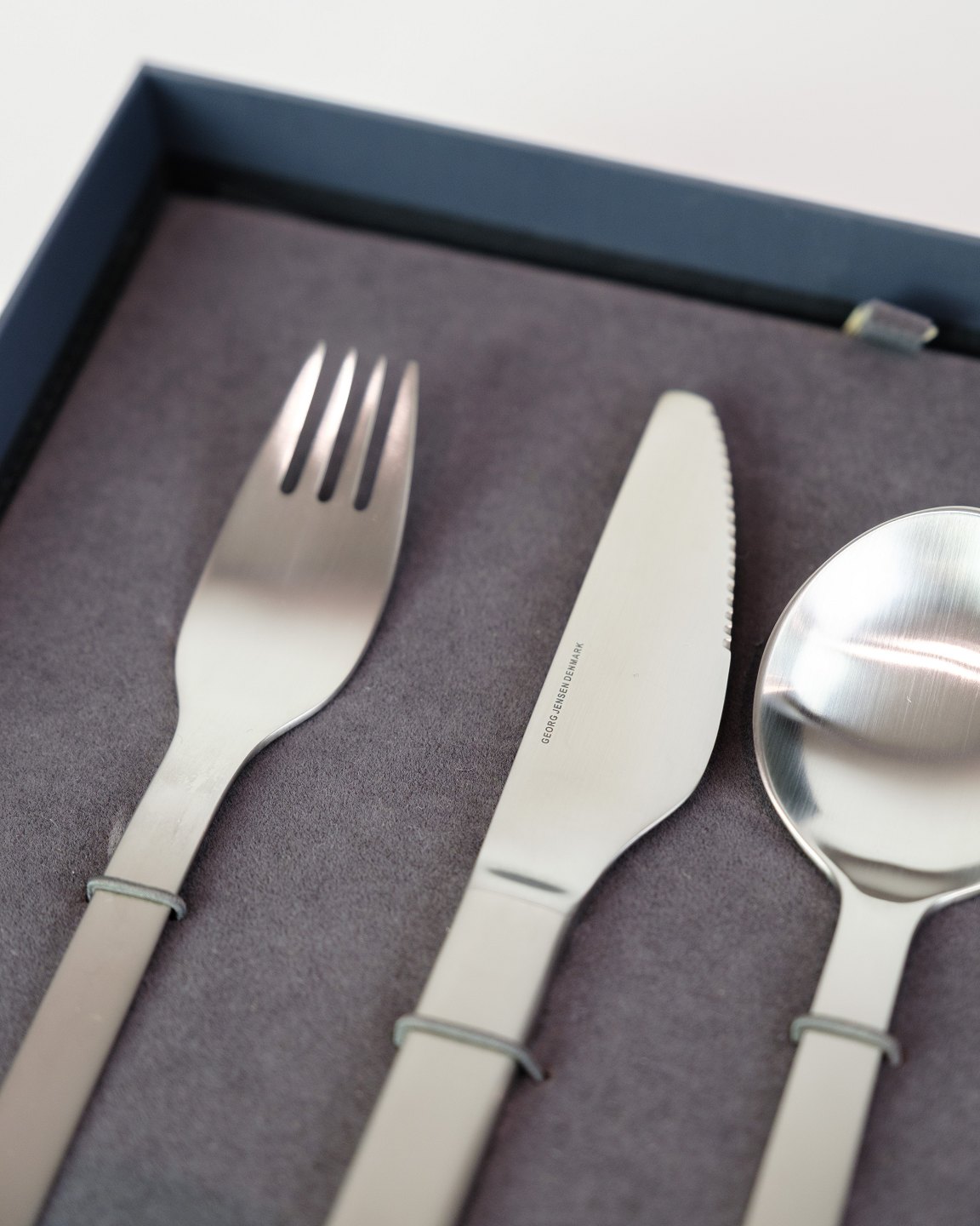 Georg Jensen New York bestiksæt i rustfrit stål. Design af Henning Koppel 1963. 24 dele: knive, gafler, skeer og teskeer.