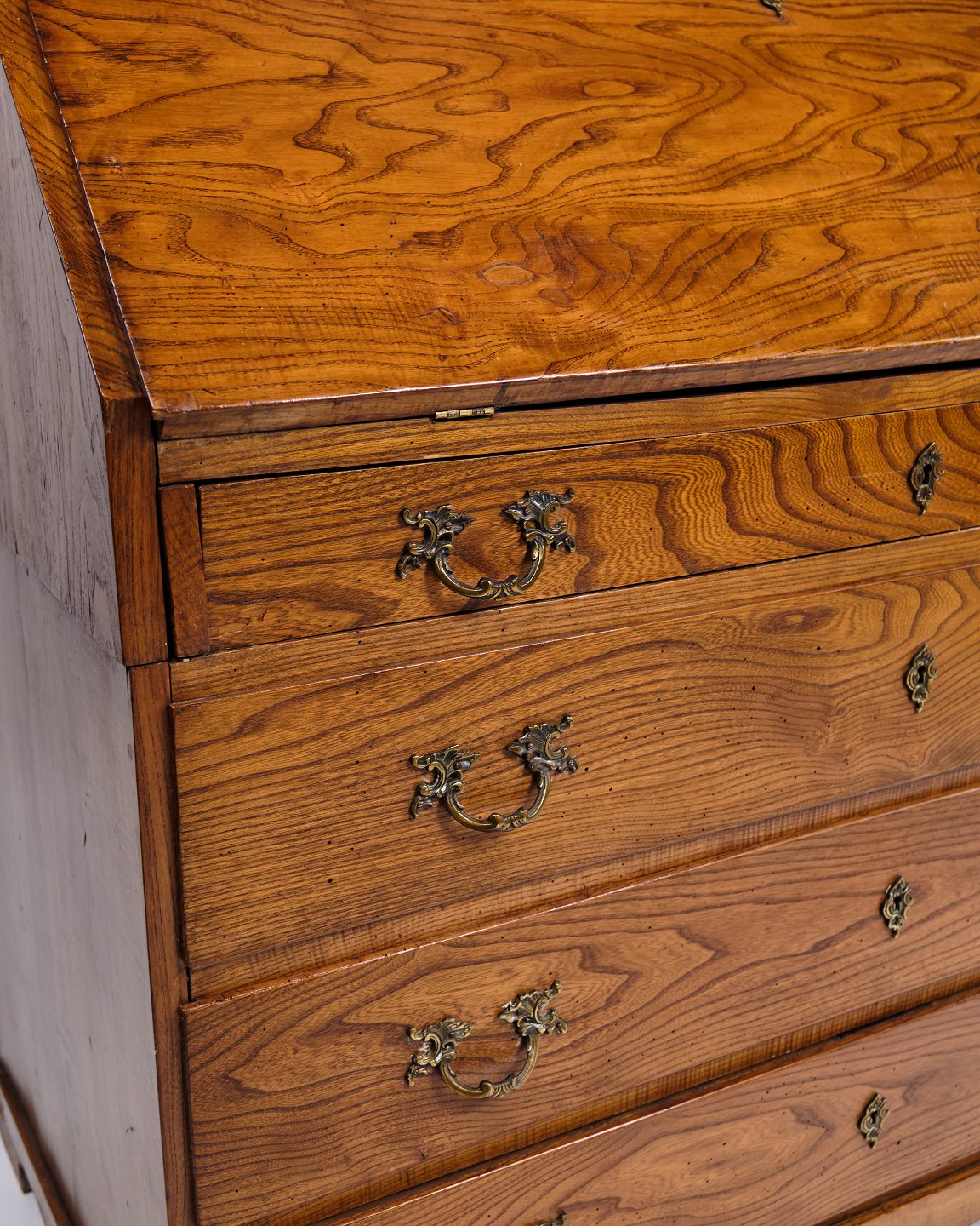 Antikt chatol i Louis Seize-stil fra ca. 1840. Egetræ med messingbeslag. H: 190 cm, B: 117 cm, D: 55 cm. Klassisk 1800-tals møbelhåndværk.