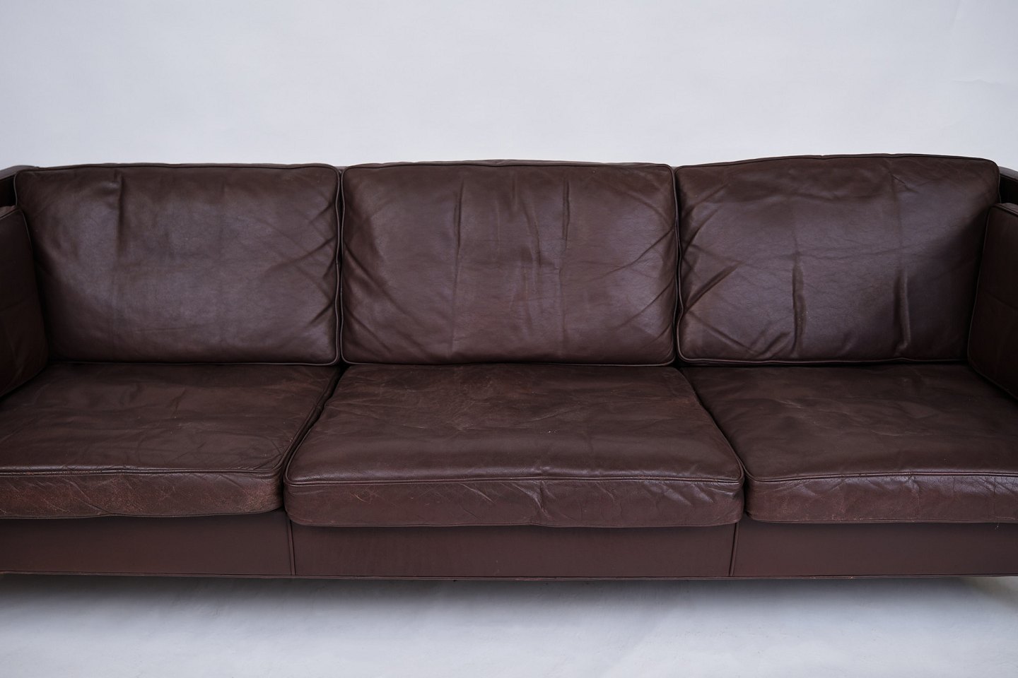 Børge Mogensen 3-seater sofa, model 2442. Brown leather with beautiful patina. Fredericia Møbelfabrik, 1960s.