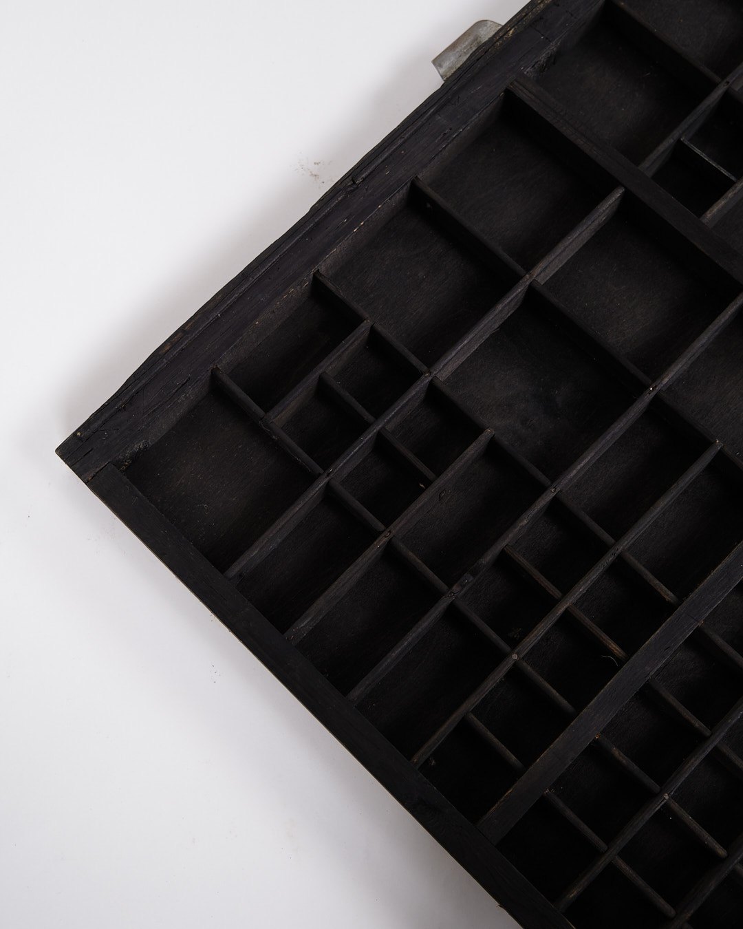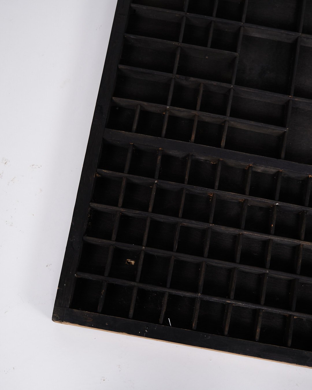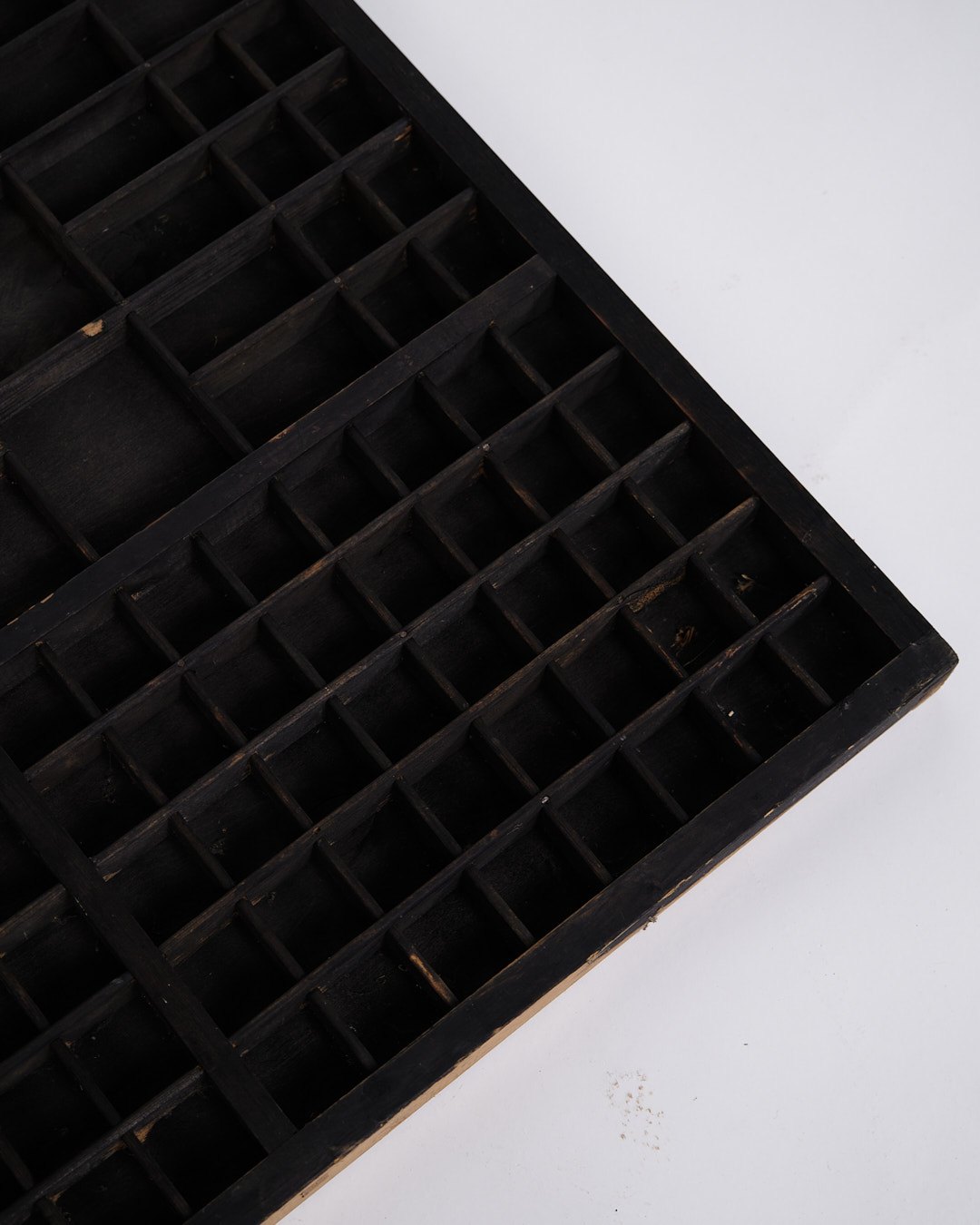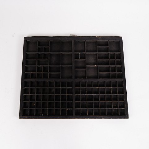 Old wall-mounted planter box from the 1930s. Black painted wood with small compartments.