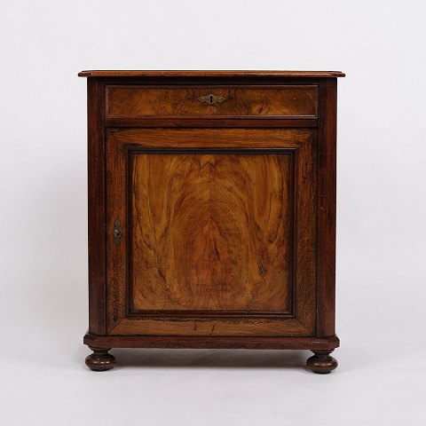 Small antique console/hallway cabinet from the 1880s. Mahogany and walnut with round legs.