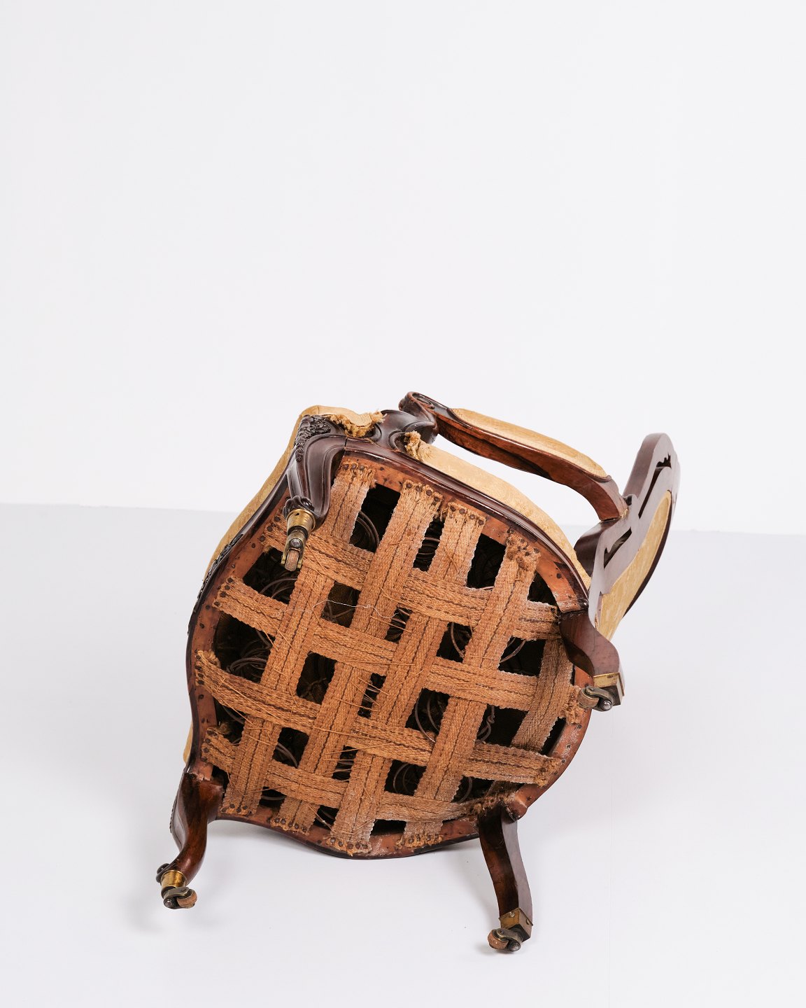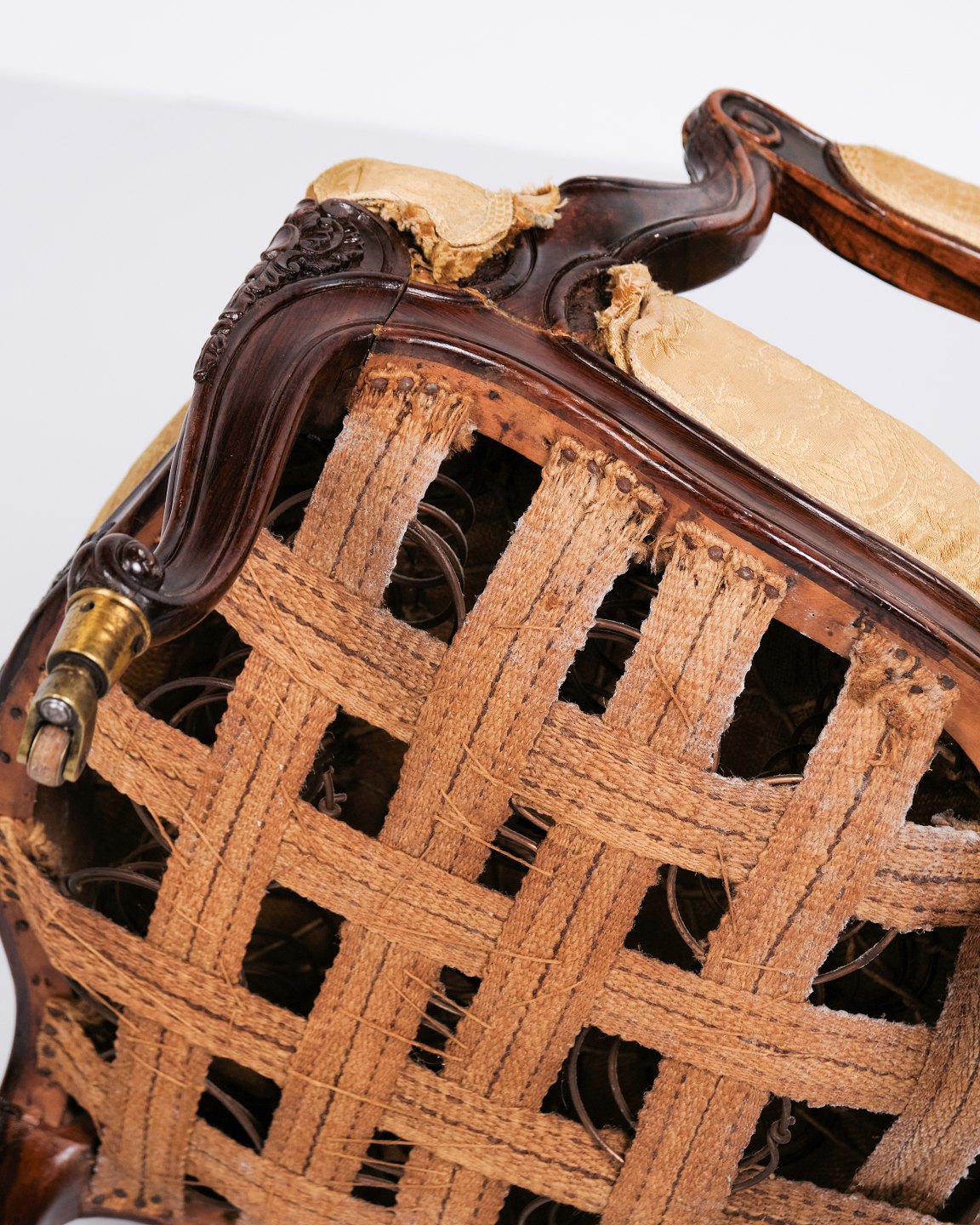 Antique Armchair - Rococo Style - Mahogany & Floral Upholstery - 1890s