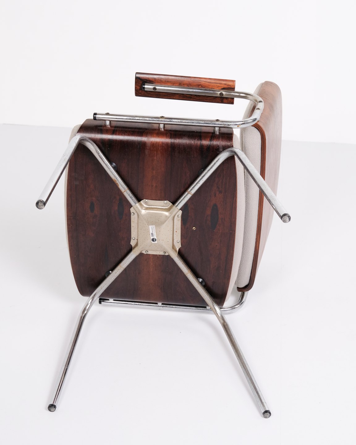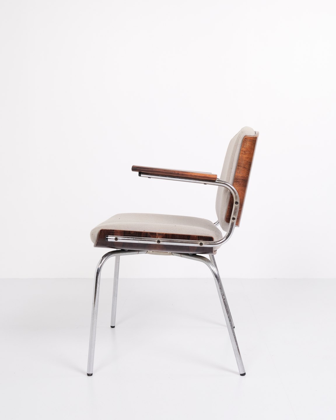 Set of four Duba conference chairs in rosewood and light gray fabric. Danish design from the 1960s.