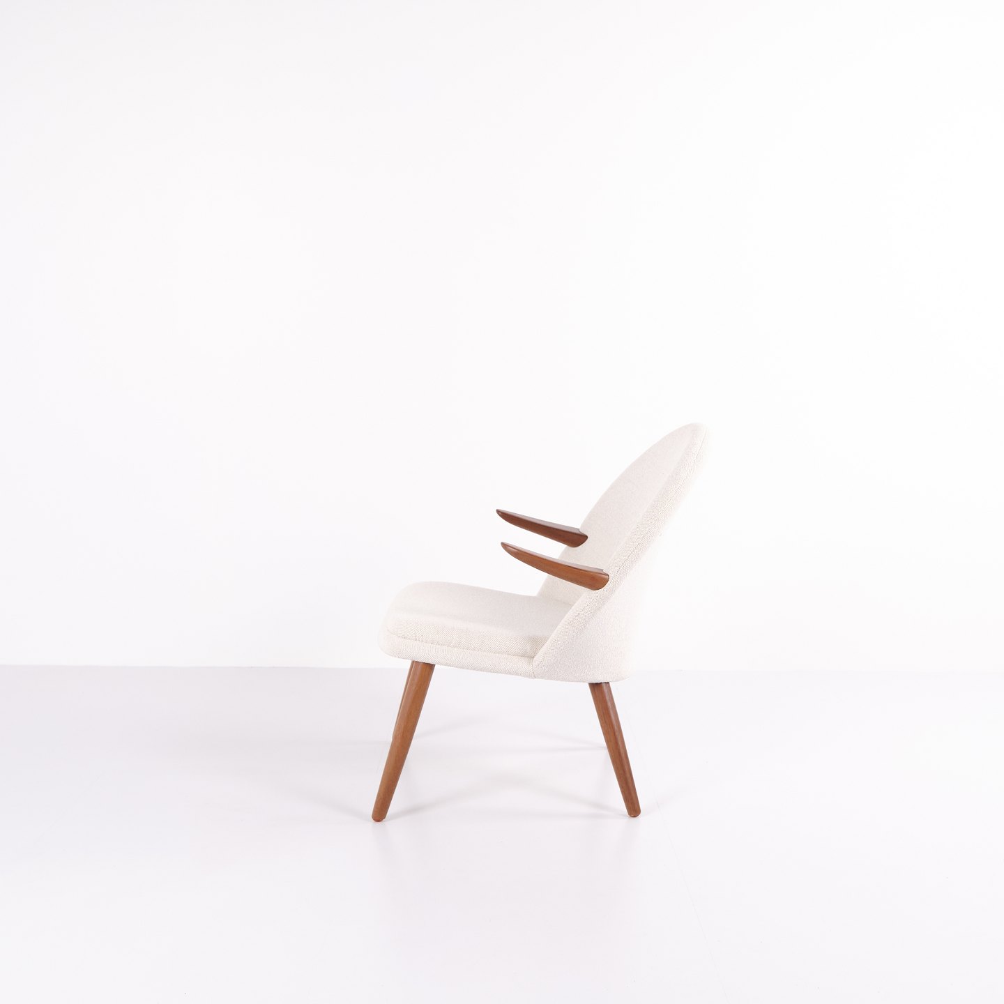Kurt Olsen armchair from Glostrup Møbelfabrik. Teak with light fabric, 1960s.