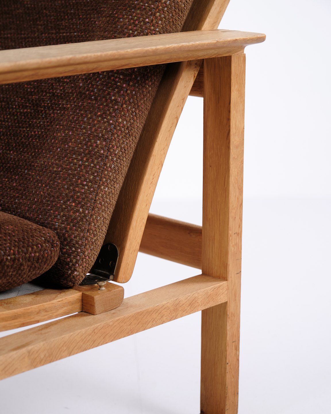 Børge Mogensen sled chair BM2254 from Fredericia Stolefabrik. Oak with brown cushions.