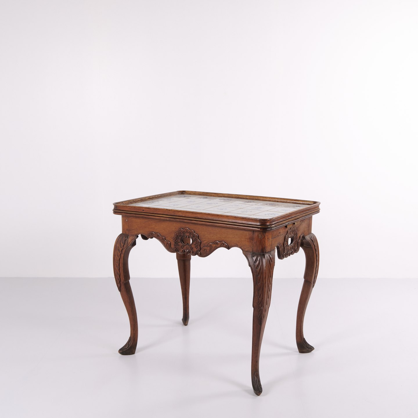 Antique Tile Table - Patinated Oak - Rococo Style - Dutch Tiles - 1780