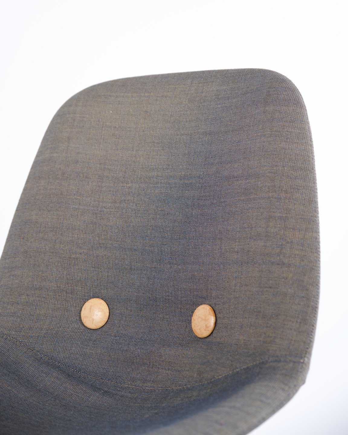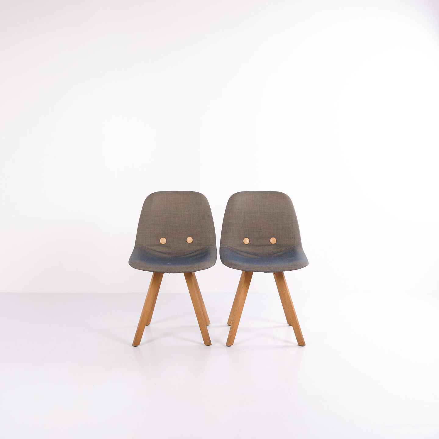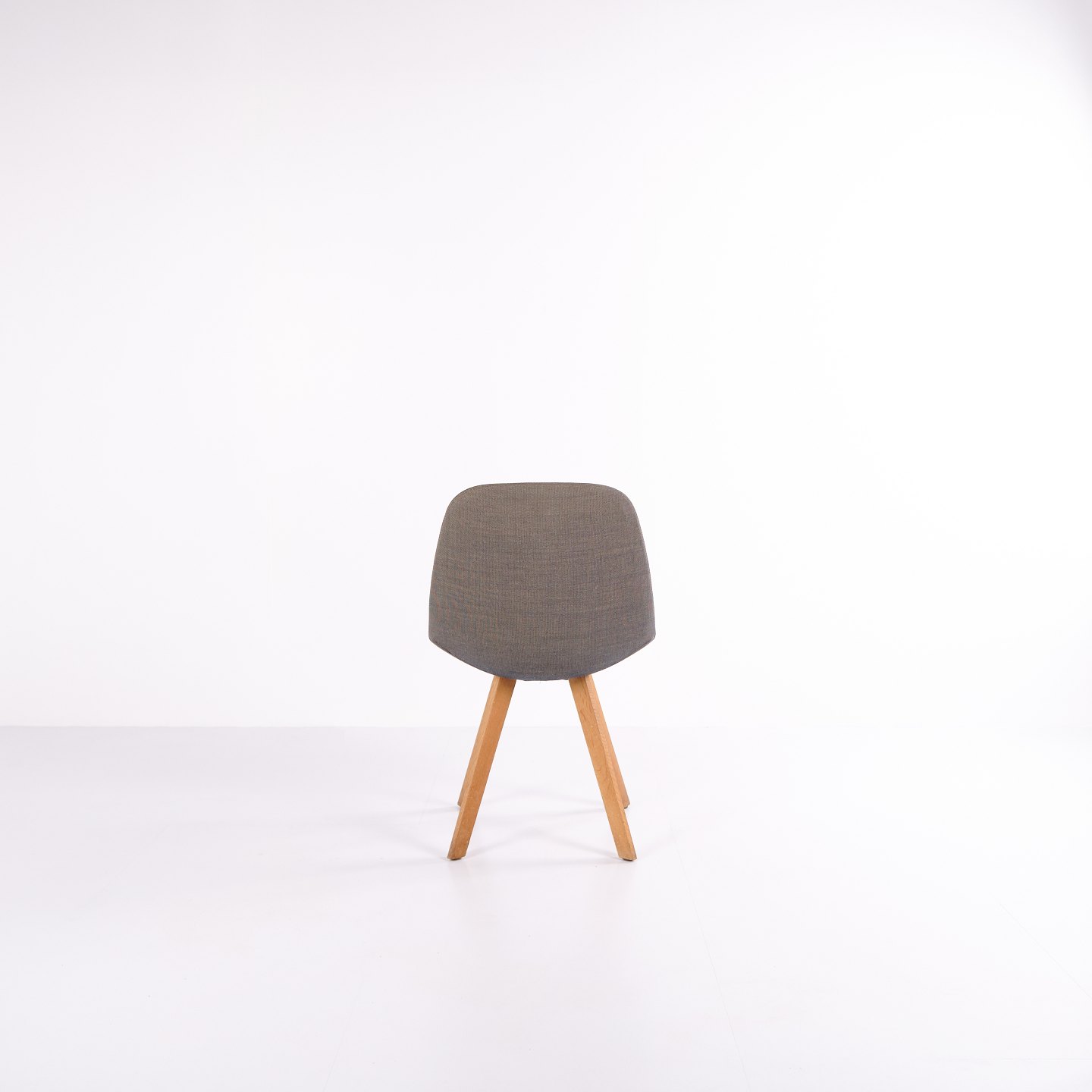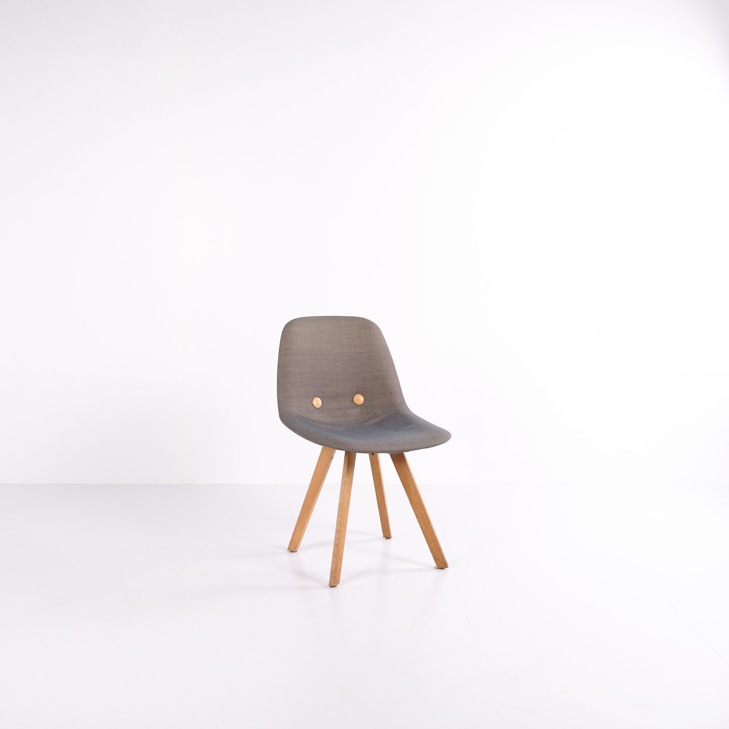 Eyes Wood chair by Erik Jørgensen with mid-grey upholstery and solid wood legs. A modern dining chair offering good seating comfort and high-quality materials.