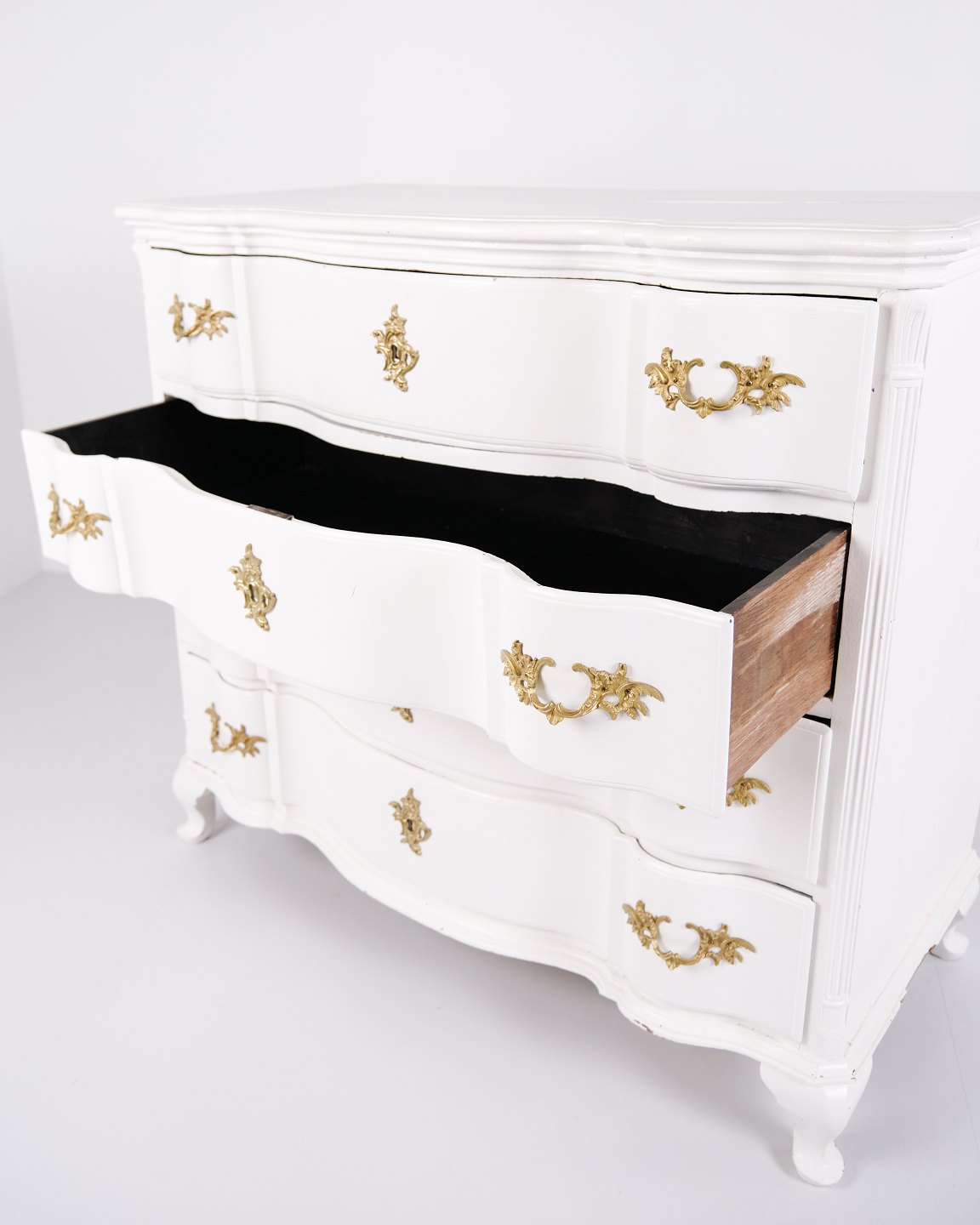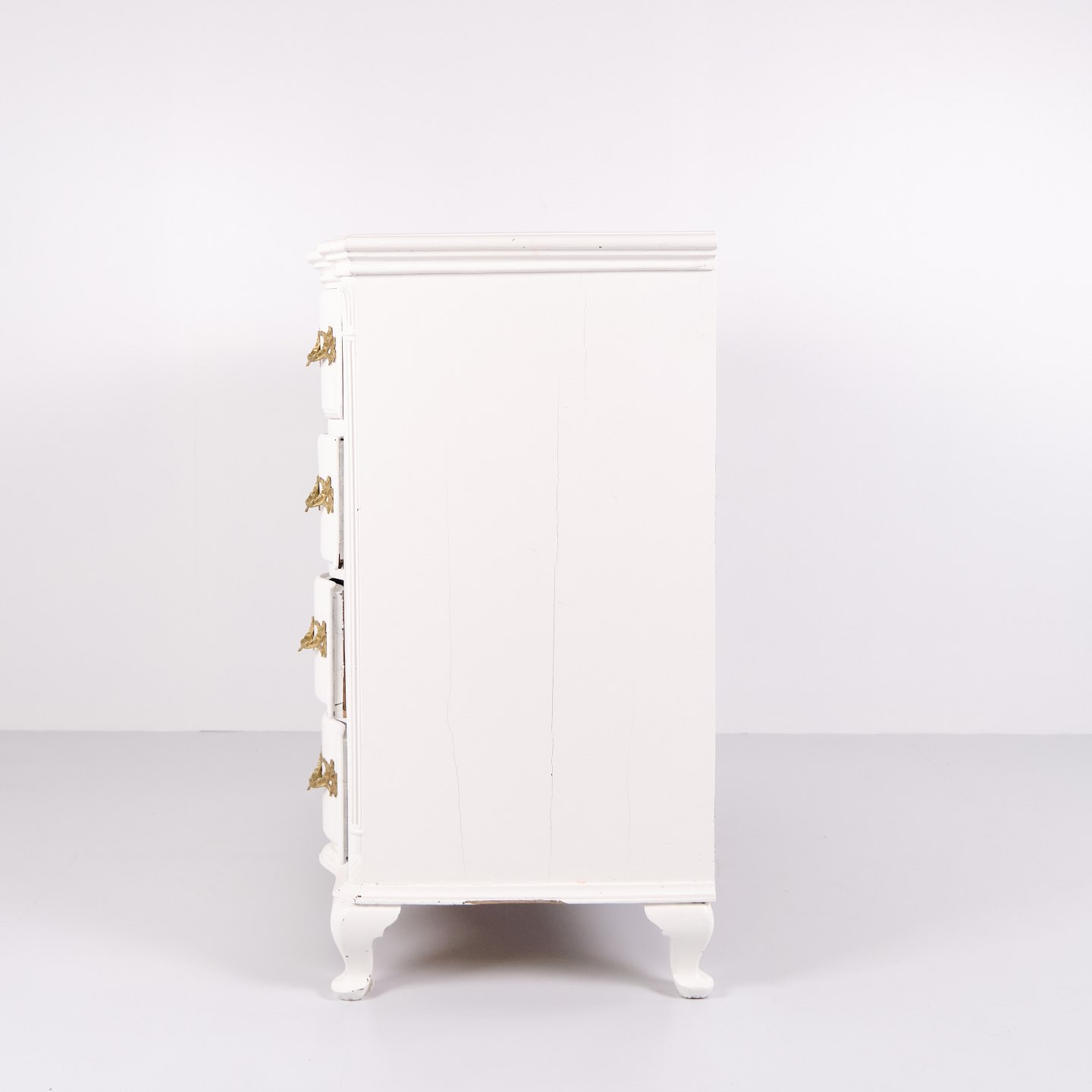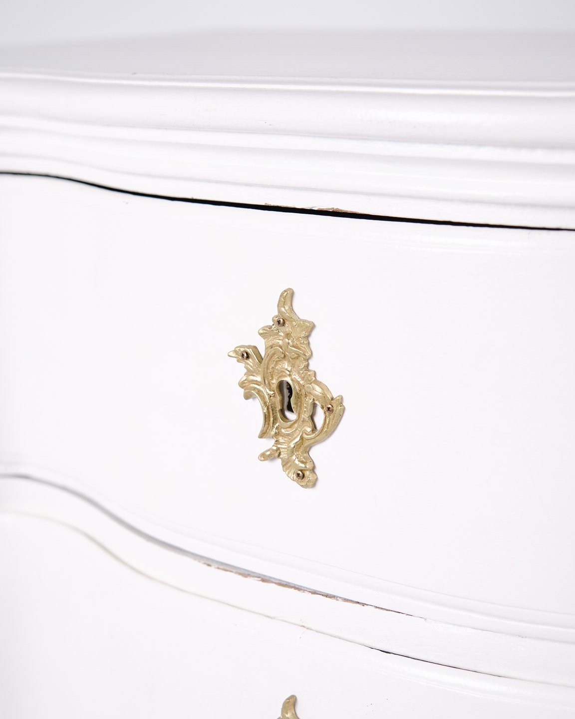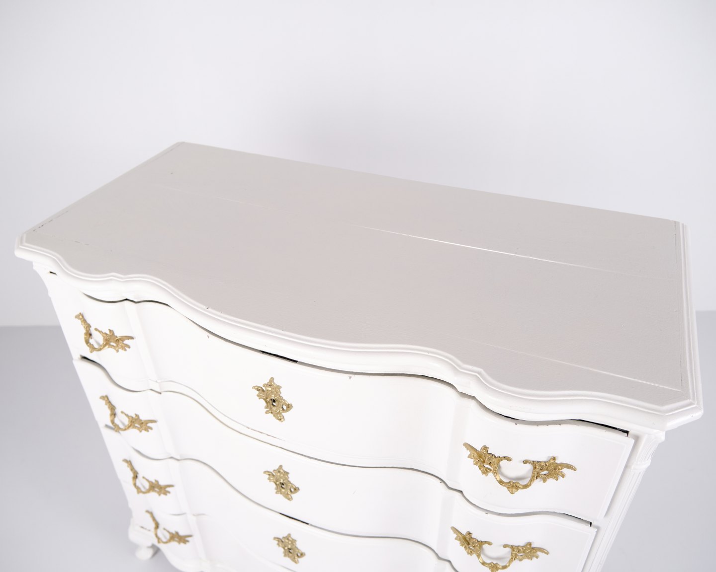 Commode ancienne baroque / commode à tiroirs avec 4 tiroirs – Baroque – Peinte en blanc & poignées en laiton – Années 1760