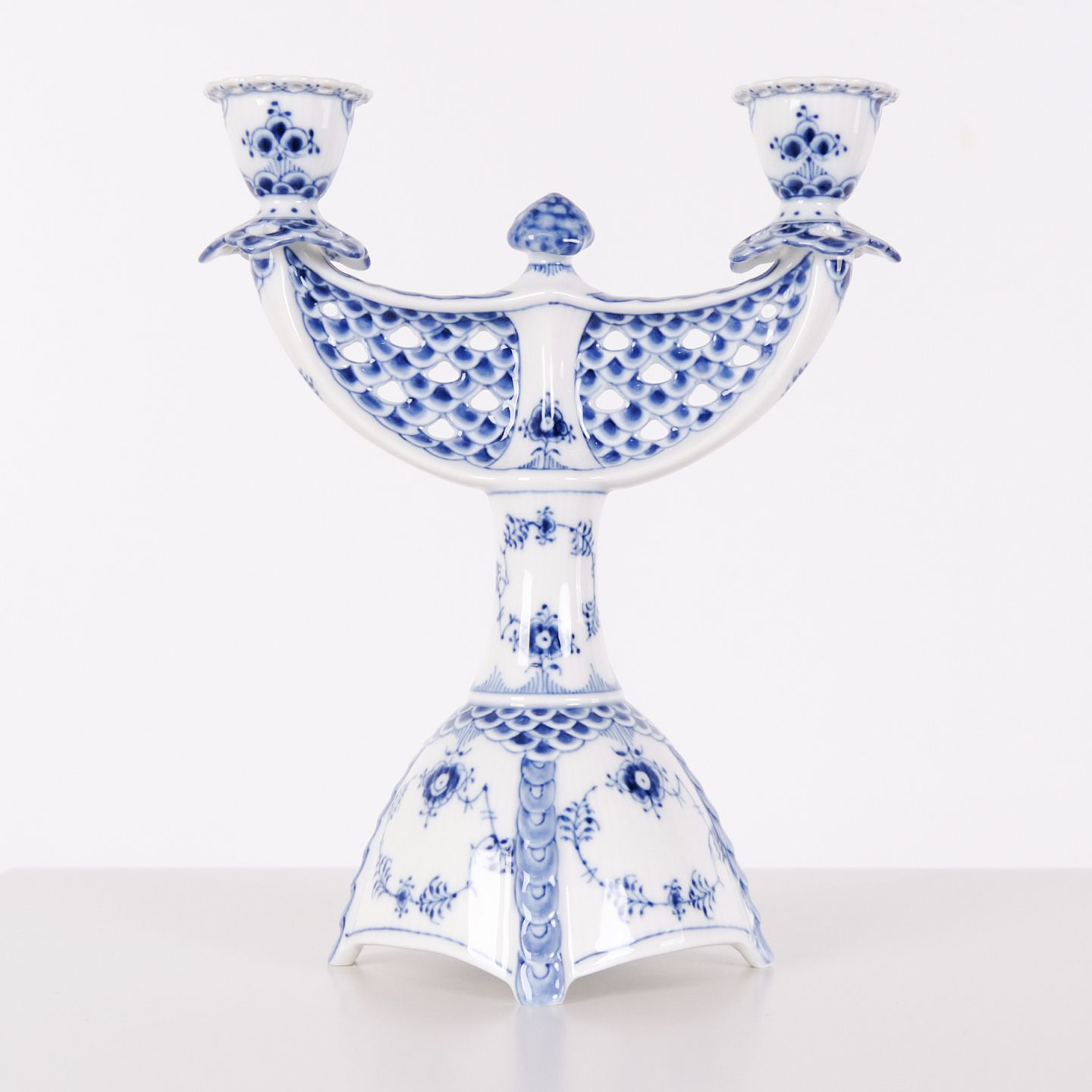 Zweiarmiger Kerzenleuchter – Musselmalet Vollspitze – Modell 1169 – Royal Copenhagen
