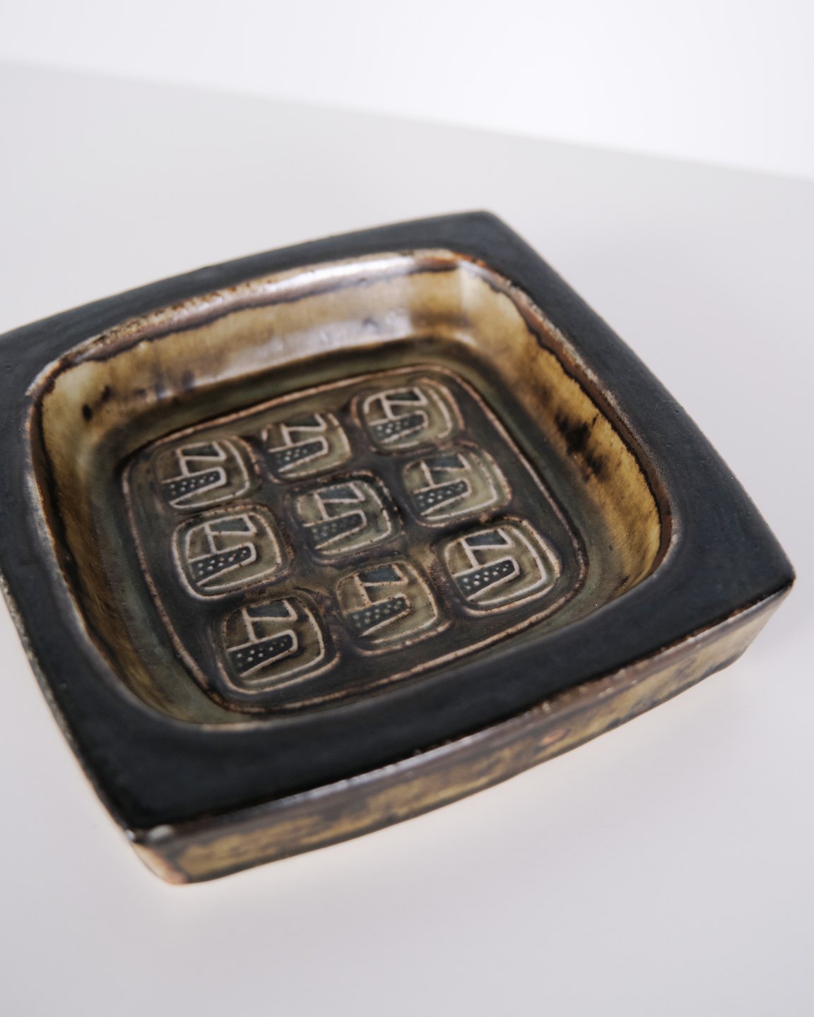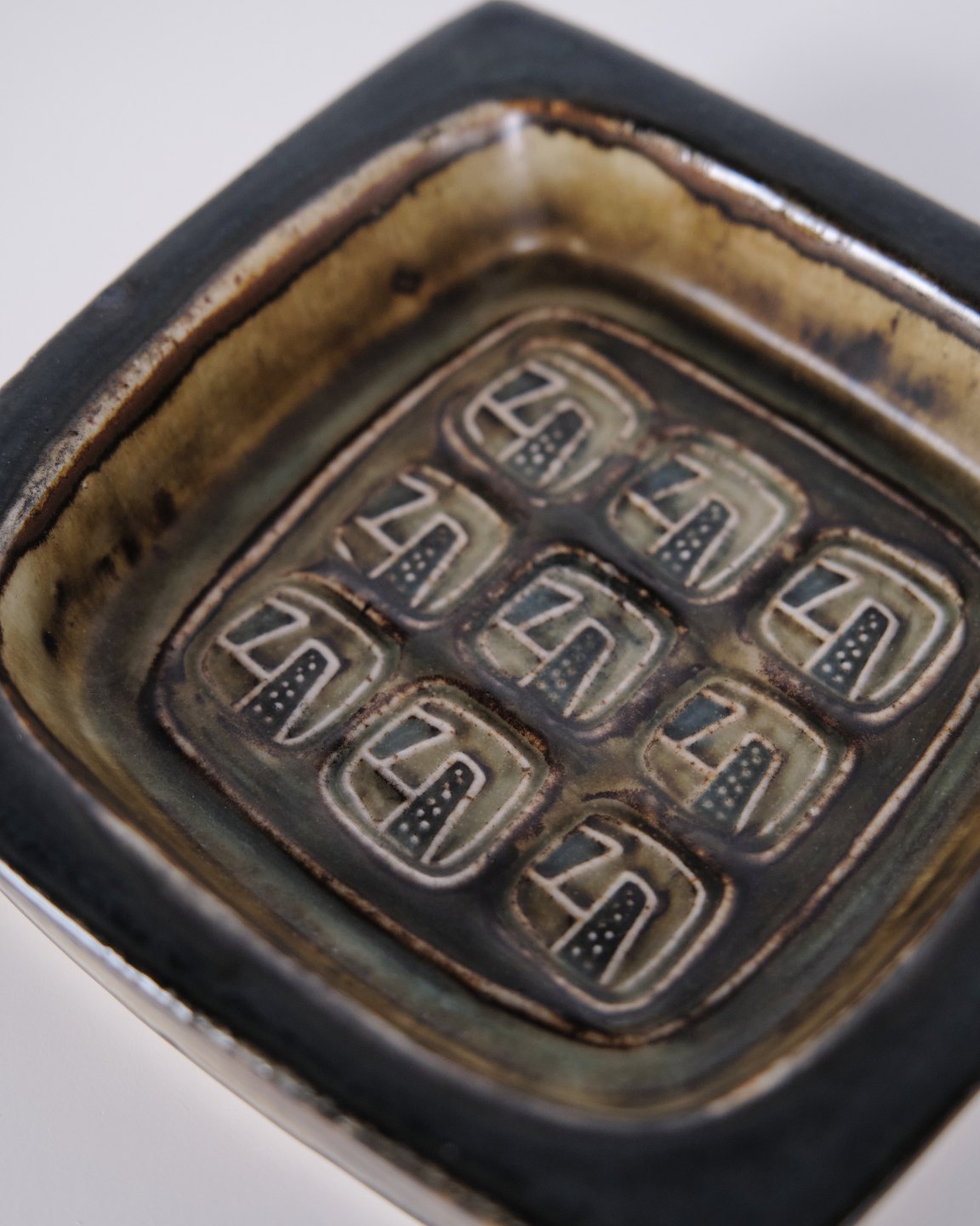 Steinzeugschale, auch als Aschenbecher verwendet, Modell 21872, entworfen von Jørgen Mogensen für Royal Copenhagen. Aus Steinzeug gefertigt und funktional gestaltet, typisch für Jørgen Mogensens Gebrauchsobjekte bei Royal Copenhagen aus der Mitte des 20. Jahrhunderts.