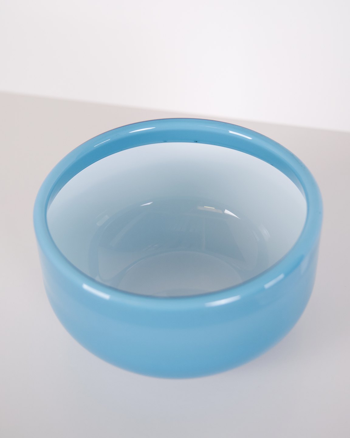Glass bowl from the Palet series designed by Michael Bang for Holmegaard. The bowl is made of glass in a blue colour tone and is part of the Palet series, produced at Holmegaard in the second half of the 20th century. The series is known for its use of coloured glass within Danish glass design.