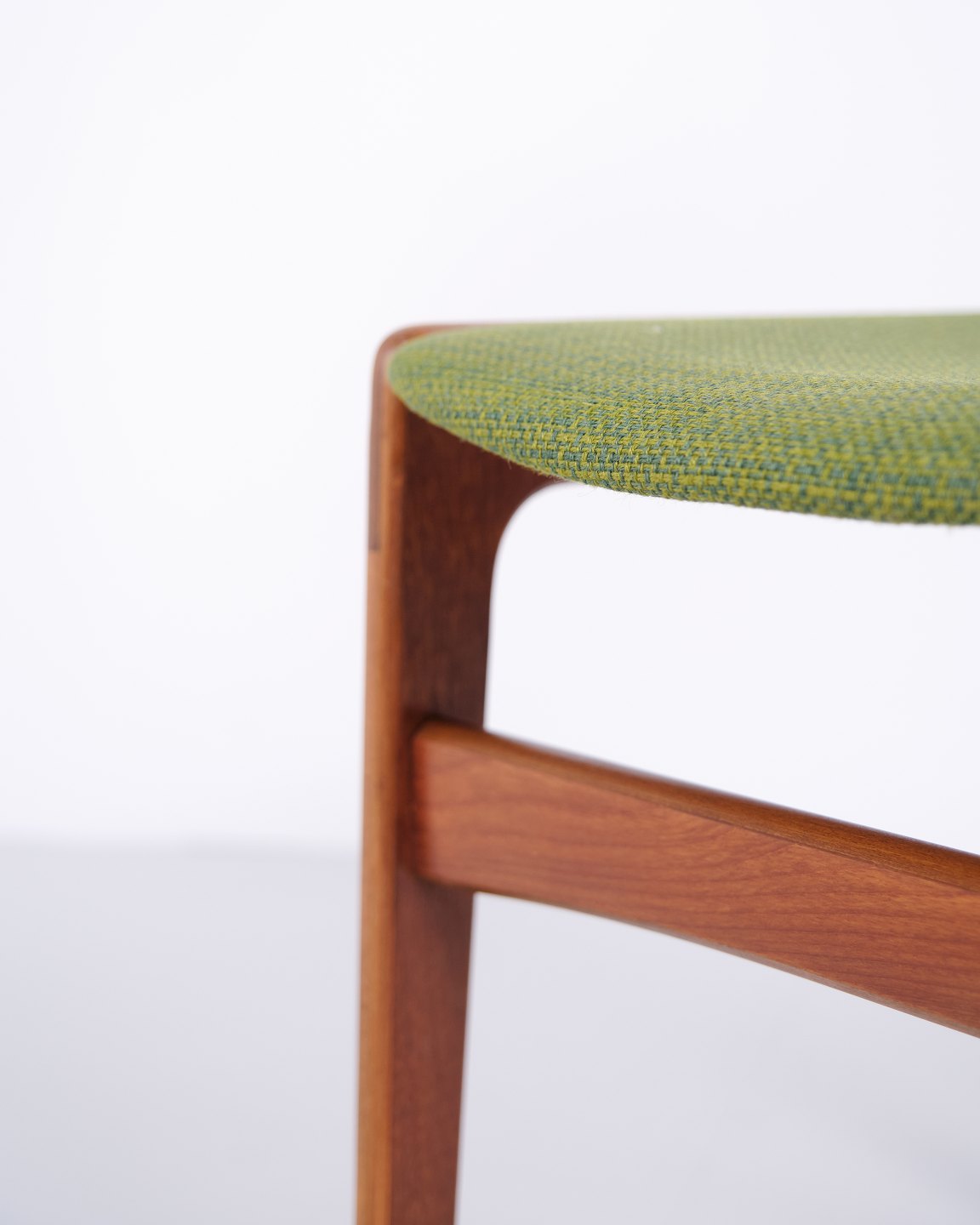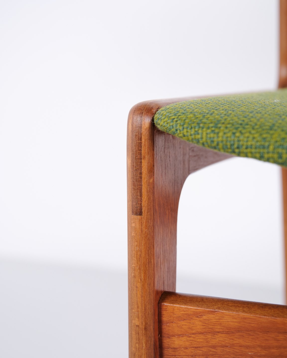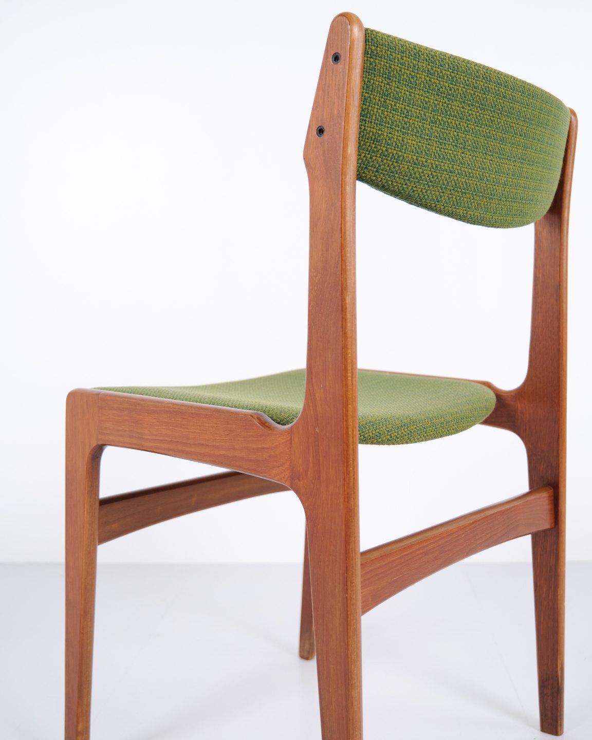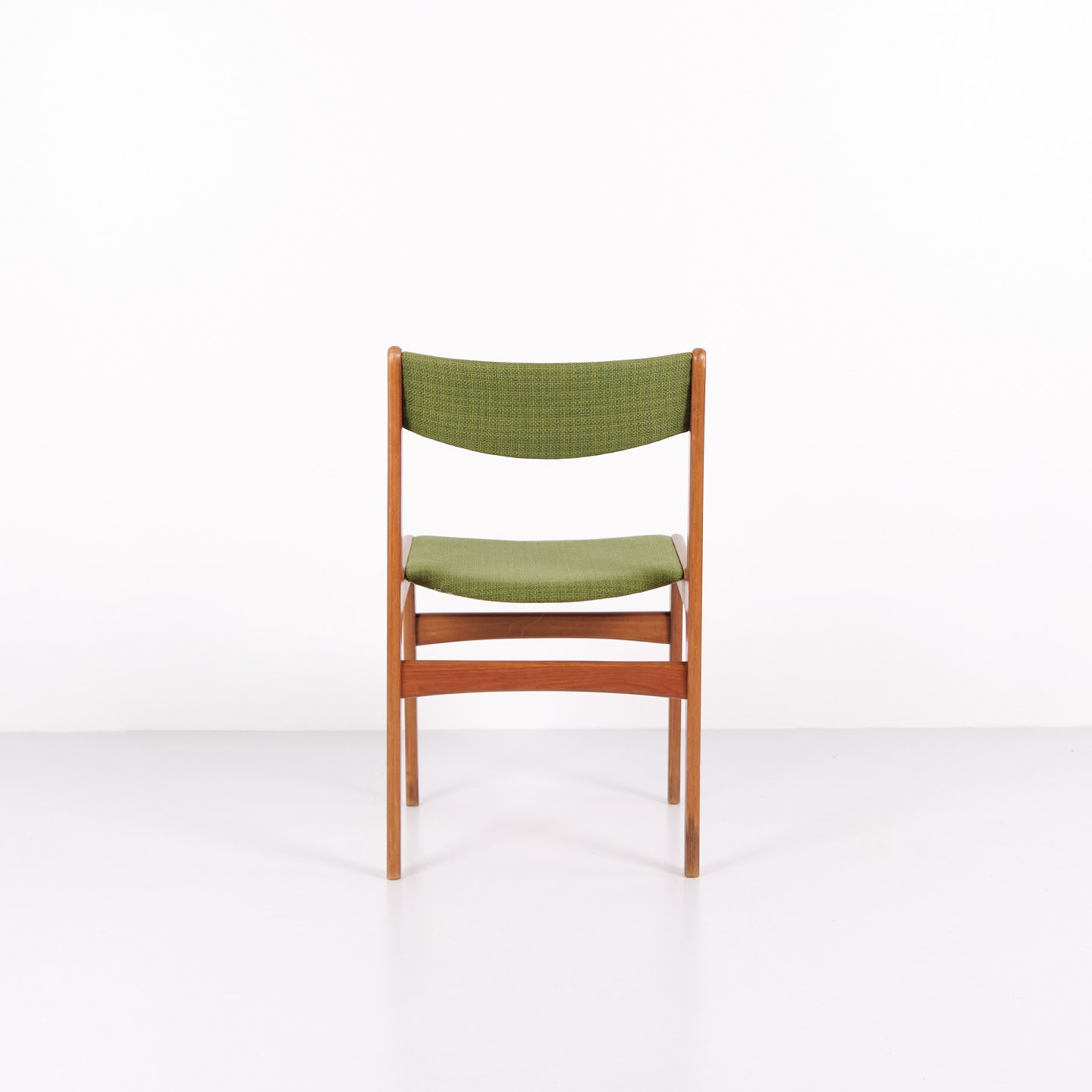 Chaise de salle à manger Erik Buch des années 1960 en teck et tissu vert. Design danois classique.