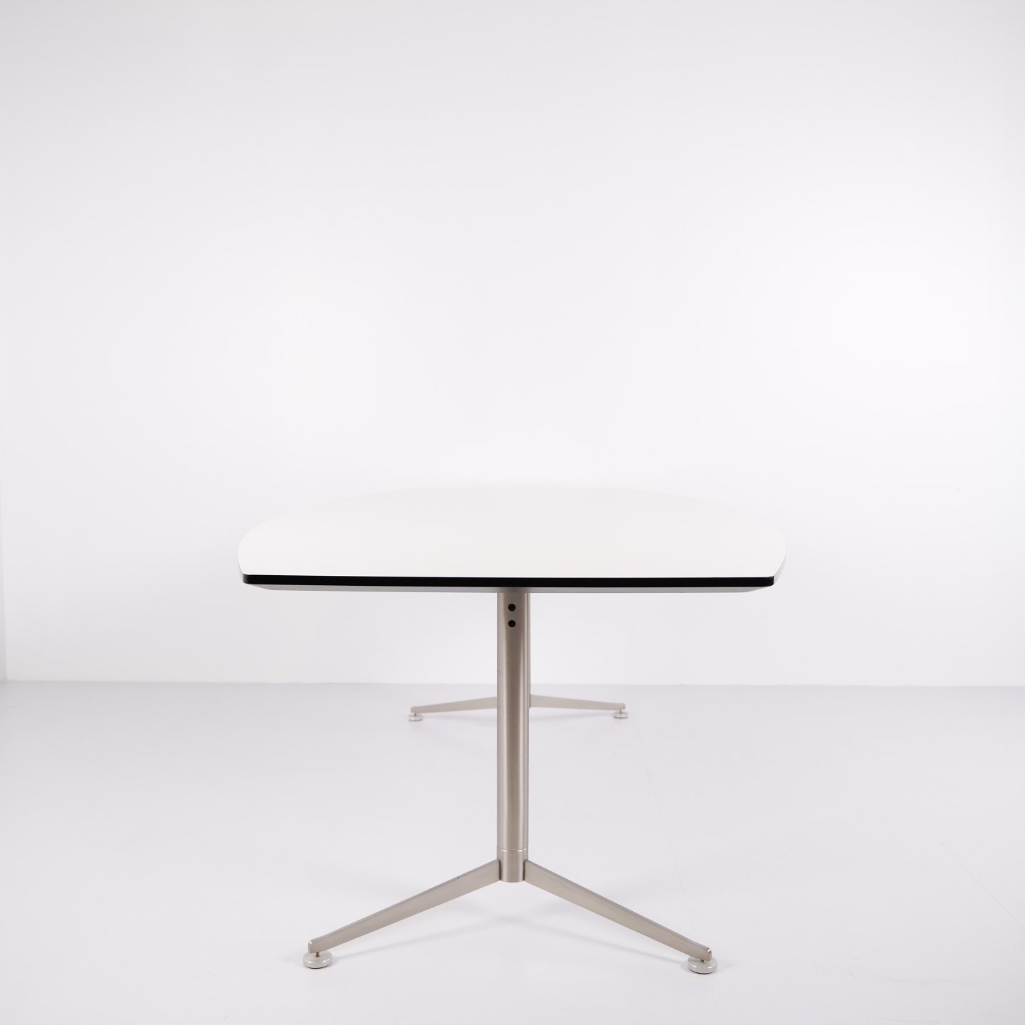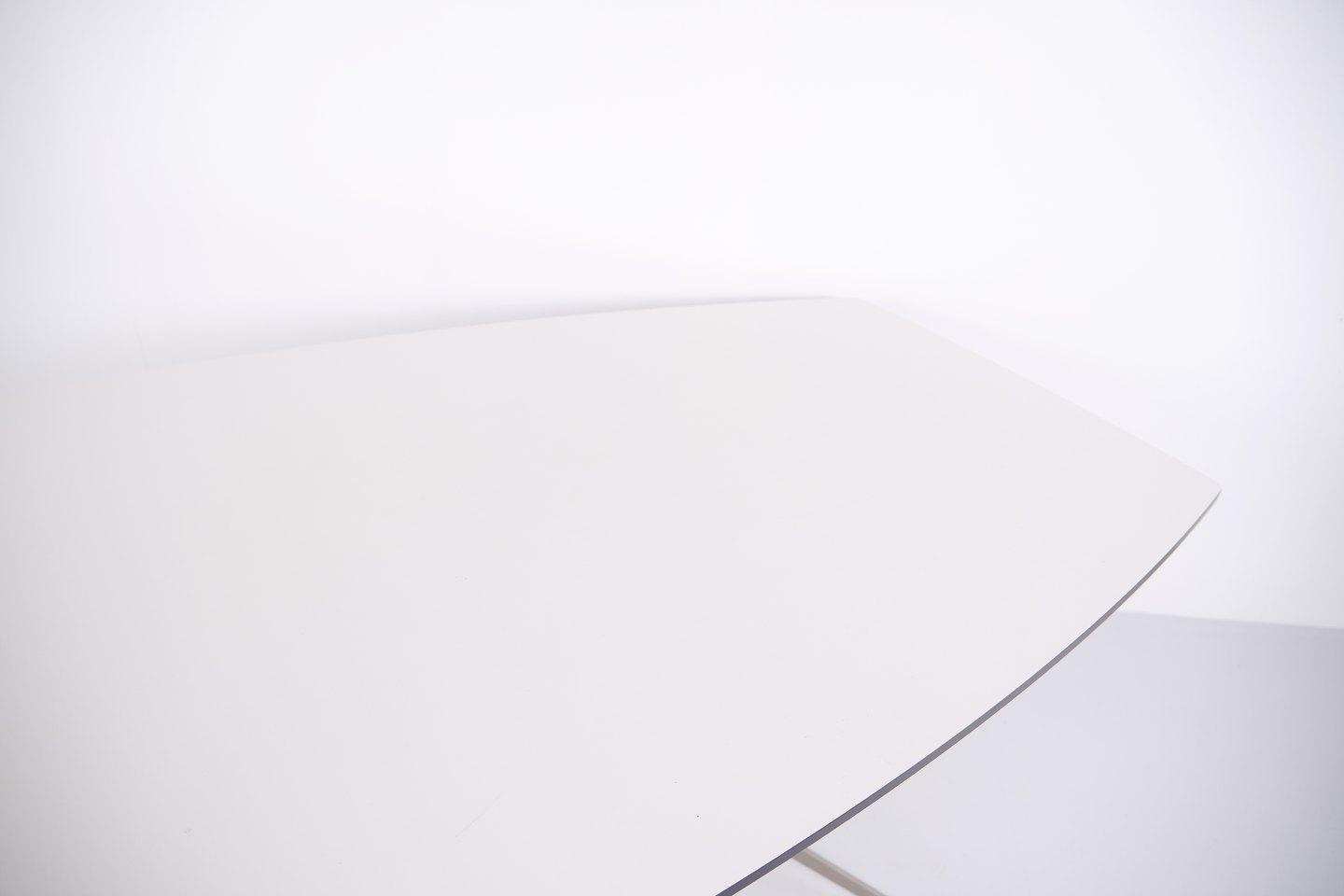 Paustian Konferenztisch Modell SP64 Spinal in weißem Laminat mit Gestell aus gebürstetem Stahl. Dänisches Design mit funktionalem und modernem Ausdruck.