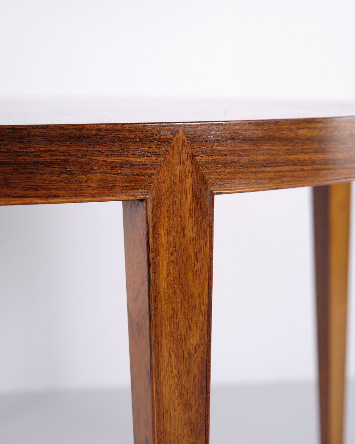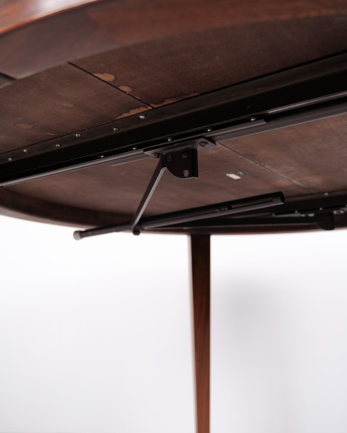 Severin Hansen runder Esstisch Modell 57 aus Palisander von Haslev Møbelfabrik. Dänisches Design aus den 1960er Jahren mit Auszug und klassischer Formensprache.