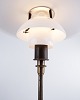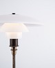 PH 3/2 Treph Tischlampe, entworfen von Poul Henningsen und als Jubiläumsmodell im Jahr 1994 von Louis Poulsen herausgegeben. Die Lampe ist mit einem brünierten Gestell und klassischen Schirmen aus weißem Opalglas ausgeführt, die ein weiches und blendfreies Licht gewährleisten. Das ikonische Dreischirmsystem wurde für eine optimale Lichtverteilung entwickelt und ist ein zentrales Element in Henningsens Designphilosophie.