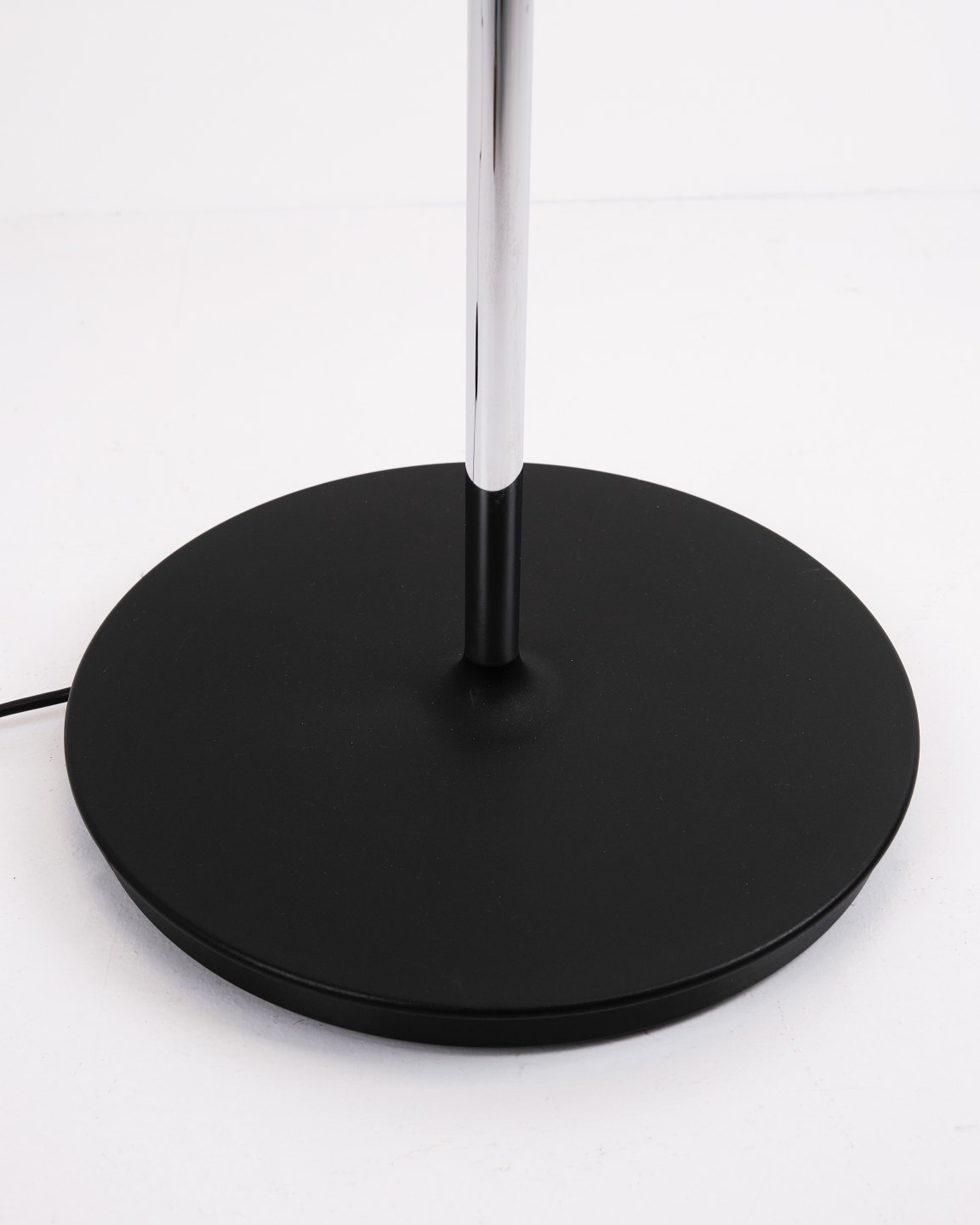 PH 80 Stehlampe, entworfen von Poul Henningsen und hergestellt von Louis Poulsen. Die Lampe wurde 1974 anlässlich des 80. Geburtstags von Poul Henningsen eingeführt. Sie ist mit Schirmen aus weißem Opal-Acryl und einem Gestell aus Chrom ausgeführt, was ihr einen leichten und modernen Ausdruck verleiht.
