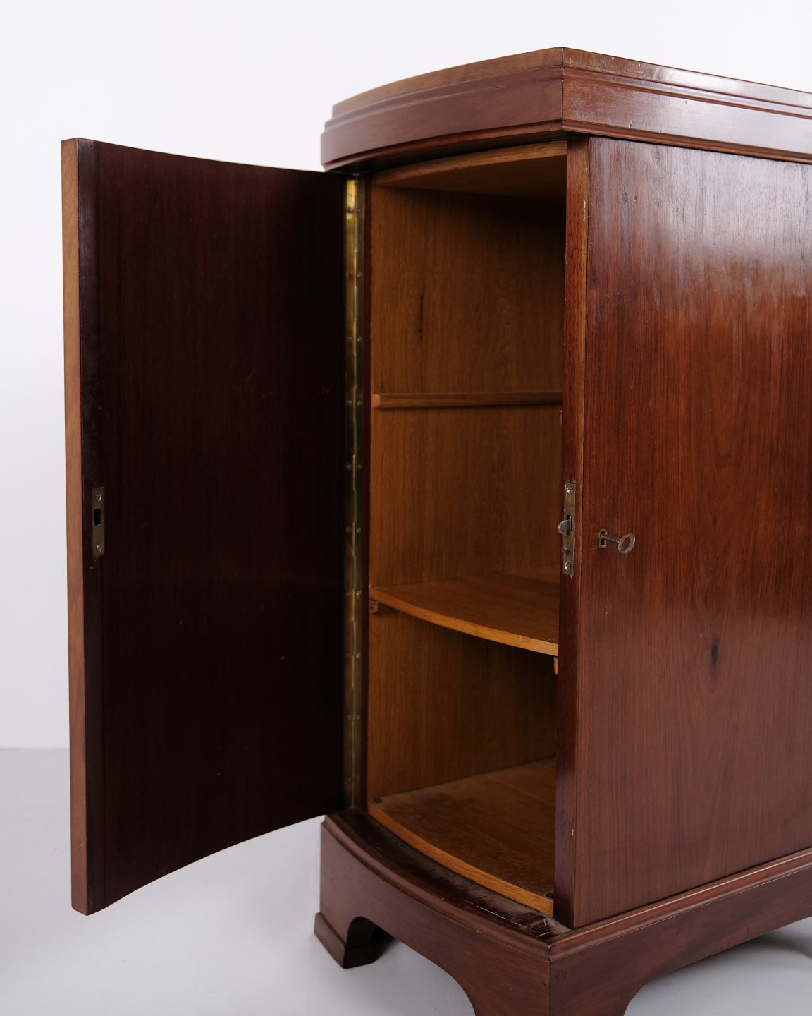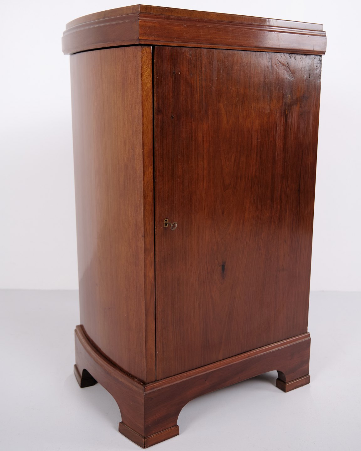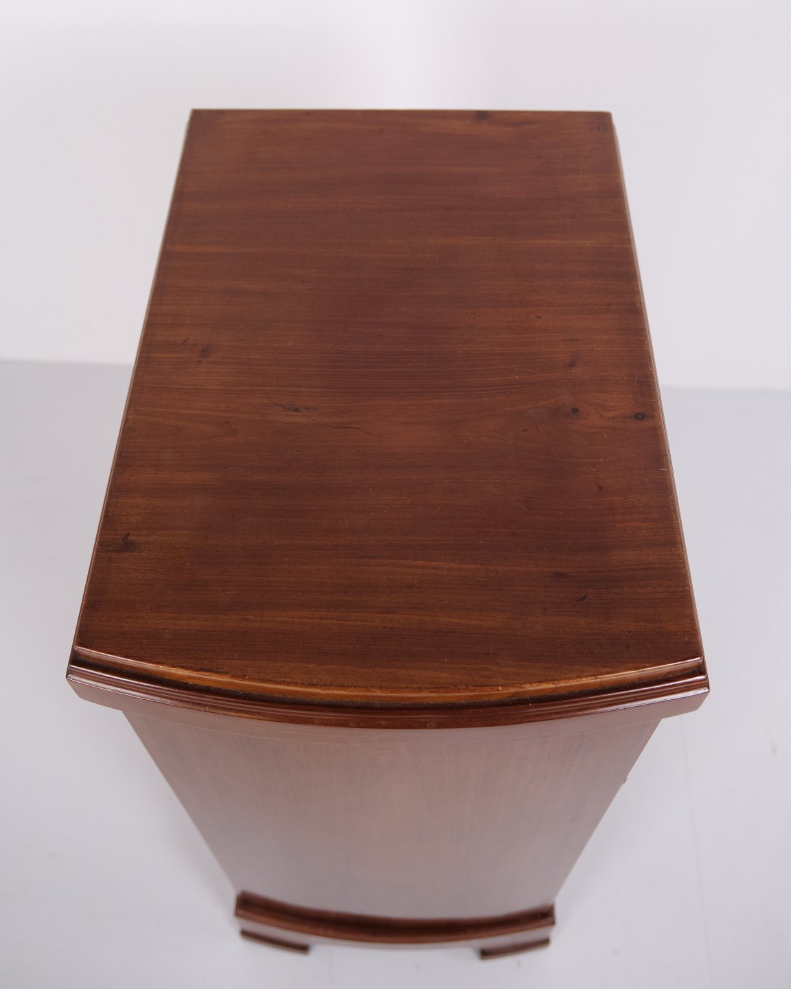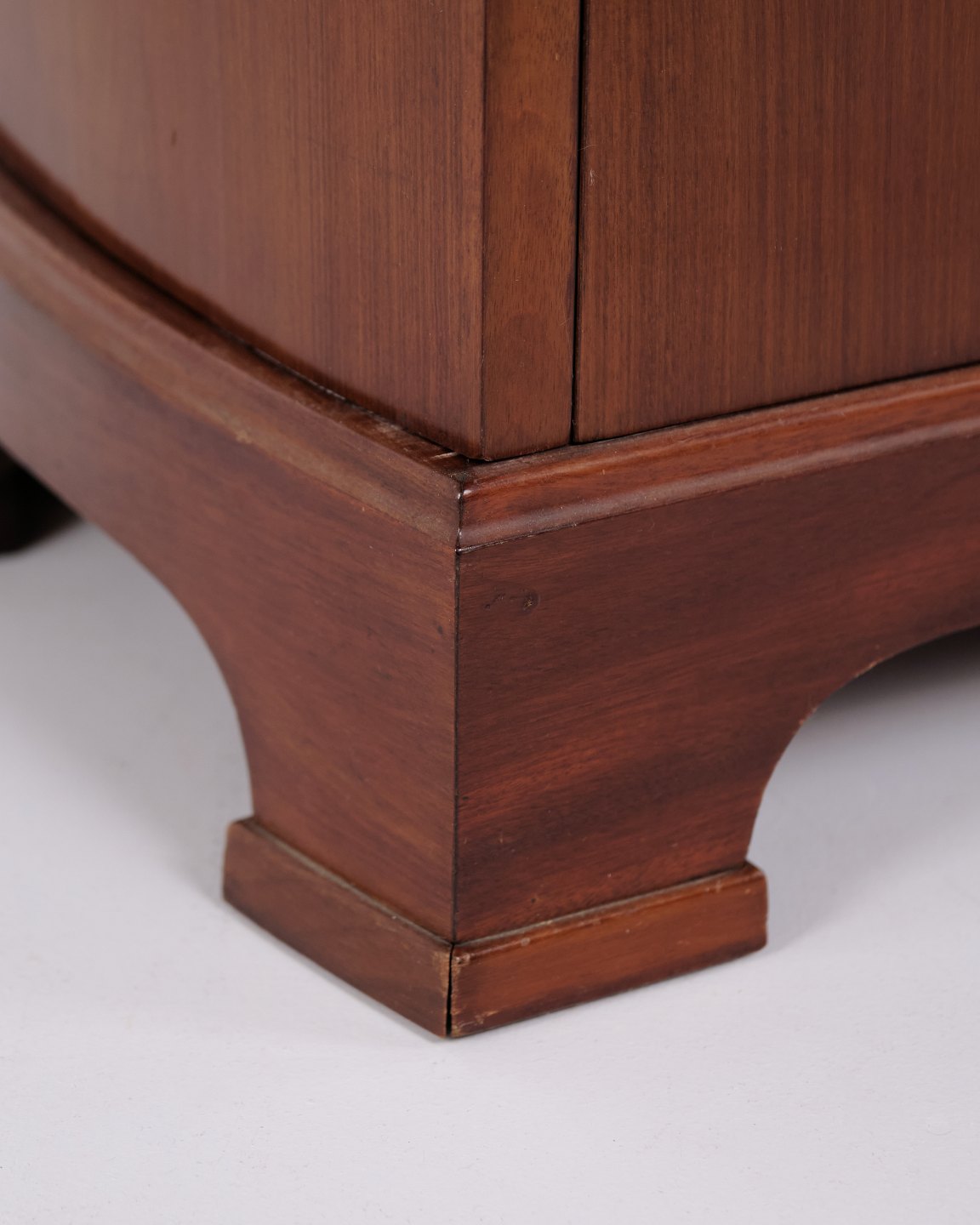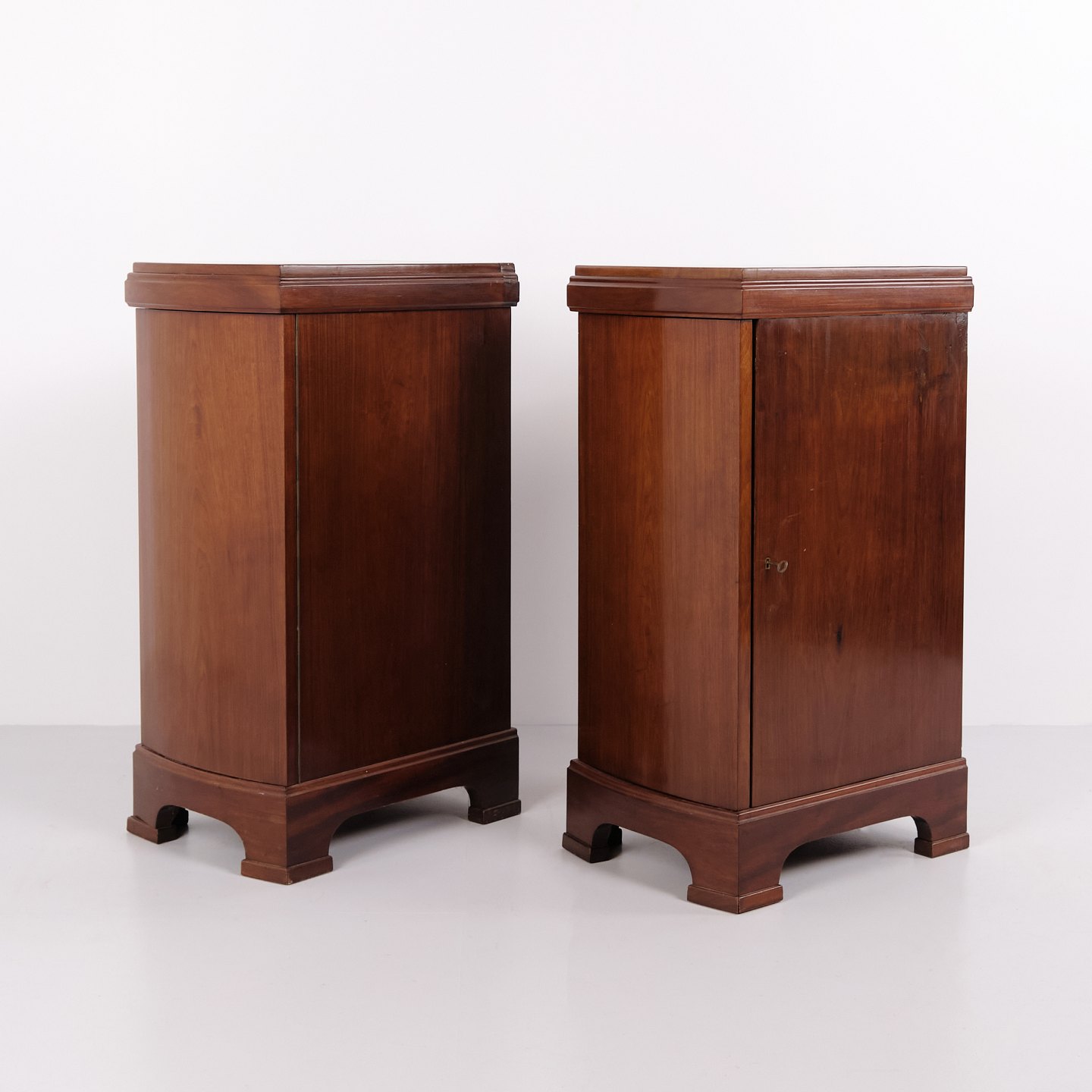 Ein Paar Nachttische aus Mahagoni aus den 1920er Jahren mit geschwungener Front und handpolierter Oberfläche. Klassisches Design mit elegantem Ausdruck.