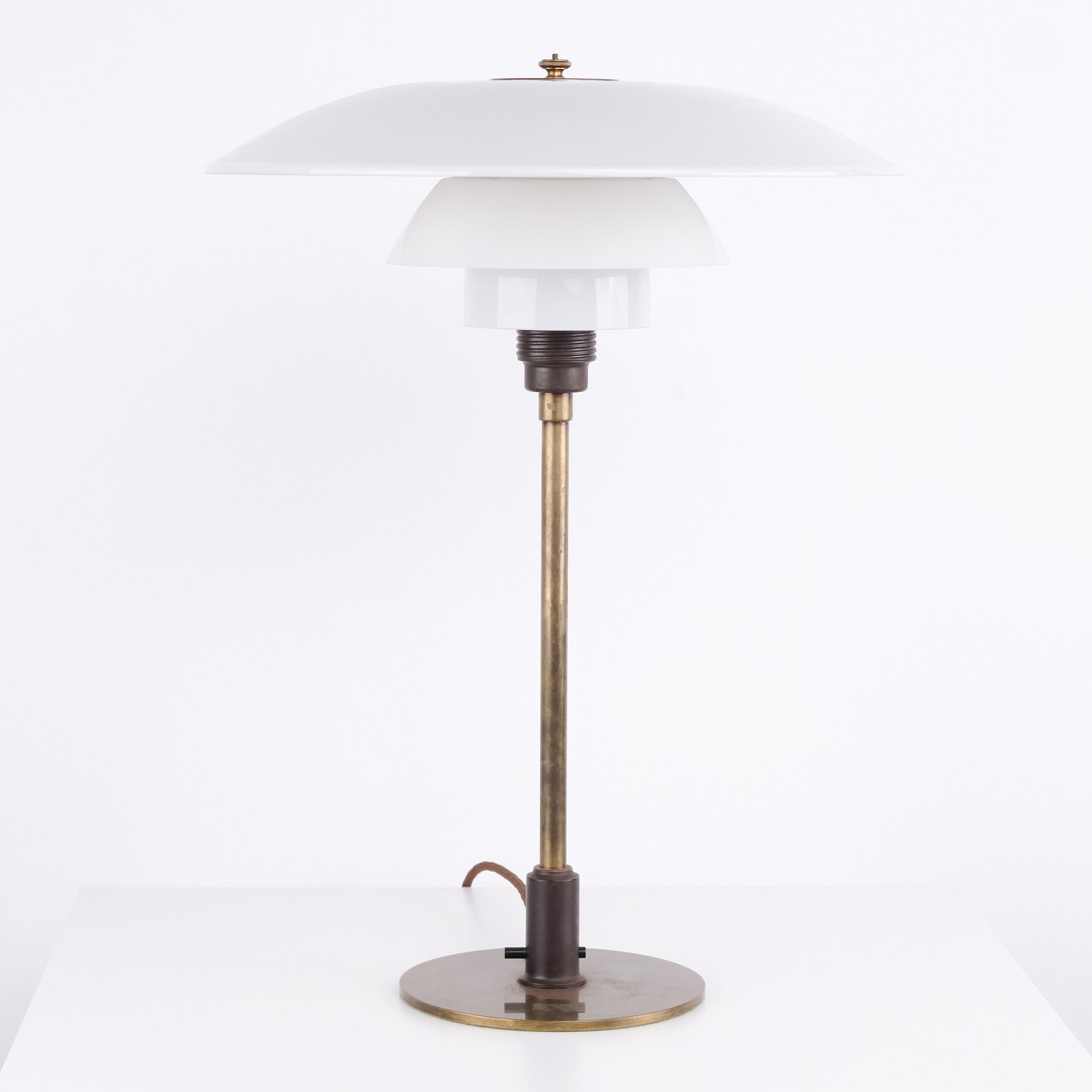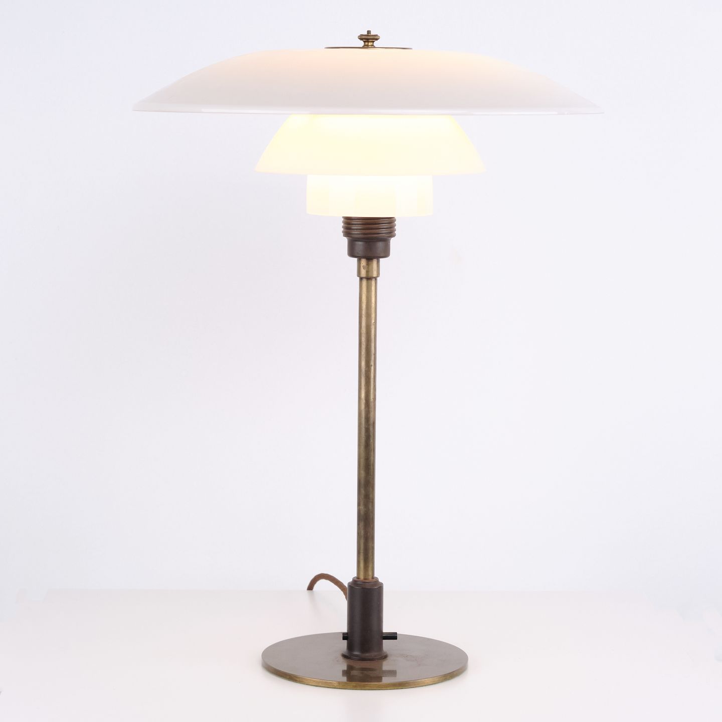PH 4/3 Tischlampe aus brüniertem Messing mit Opalglas von Louis Poulsen, 1930er Jahre. Gekennzeichnet mit „Patented“ und entworfen von Poul Henningsen.