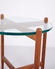 Schwedischer Beistelltisch aus den 1960er Jahren, gefertigt aus Kirschholz mit runder Glasplatte. Der Tisch verfügt über ein organisches Untergestell mit weich geschwungenen Beinen und hochwertiger Verarbeitung, inspiriert vom Designstil von Hans Johansson. Die Kombination aus massivem Holz und schwebender Glasplatte ist typisch für skandinavisches Design dieser Zeit. Geeignet als Lampentisch, Sofatisch oder Beistelltisch.