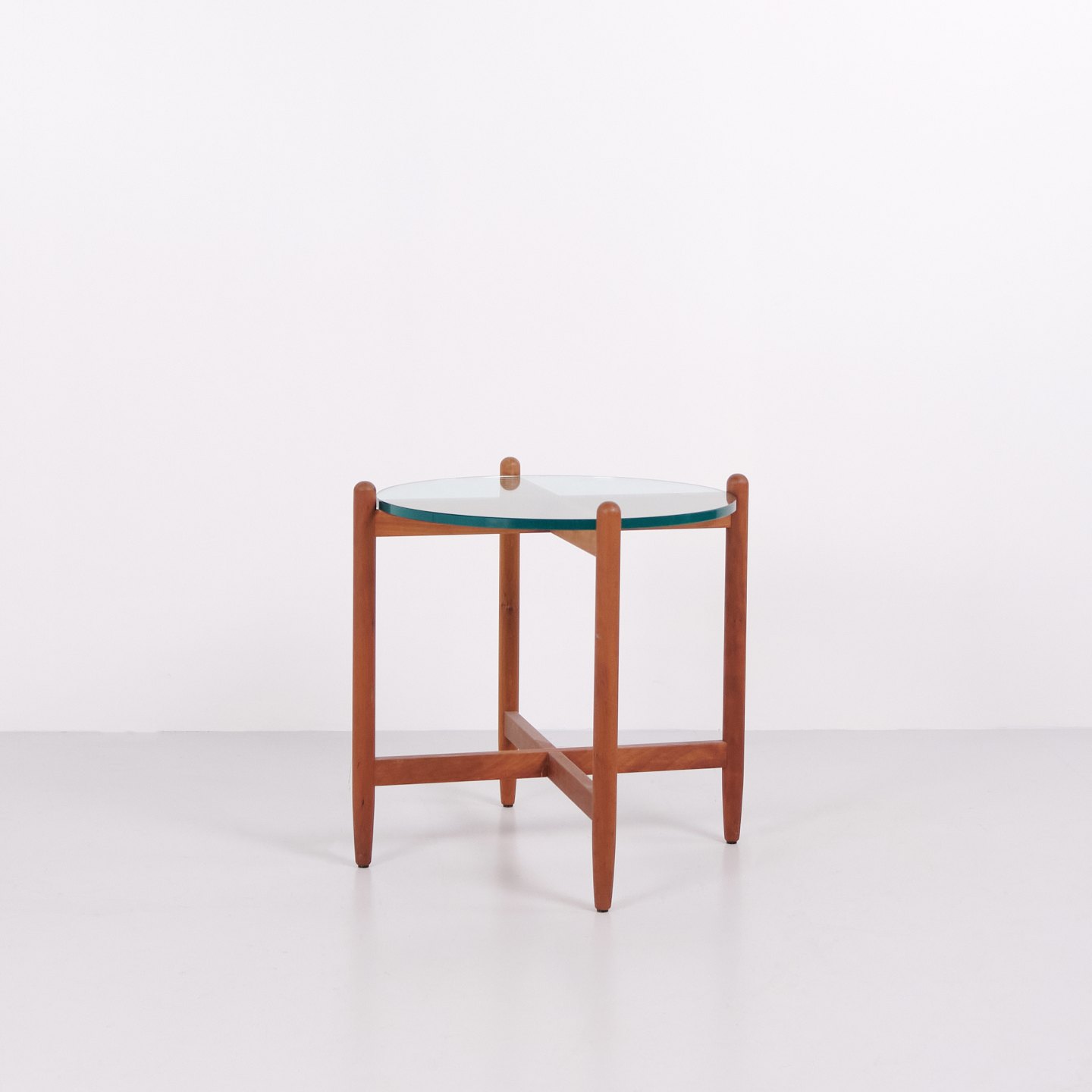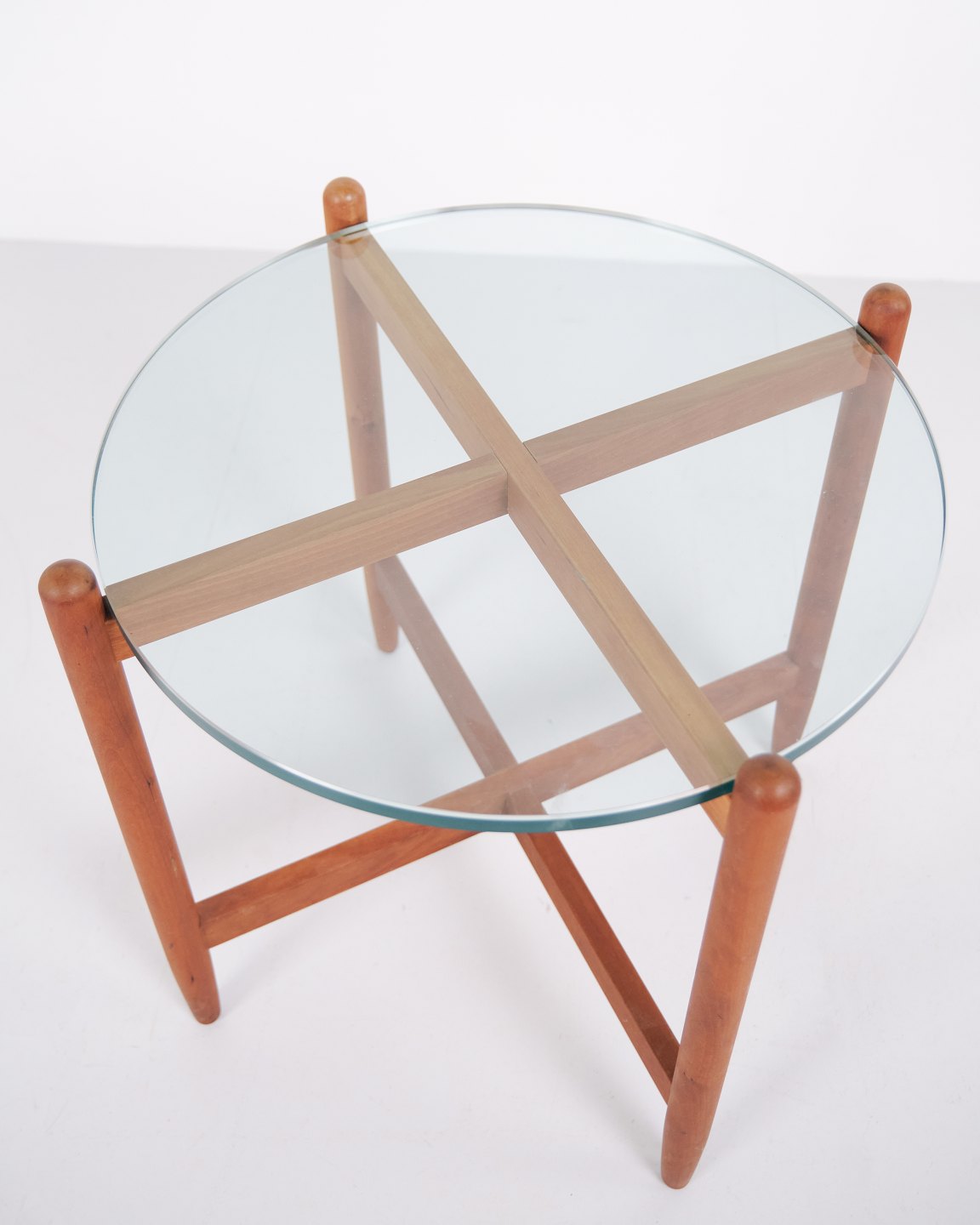 Beistelltisch mit Runder Glasplatte aus Kirschholz, Schwedisches Design im Stil von Hans Johansson, 1960er Jahre
