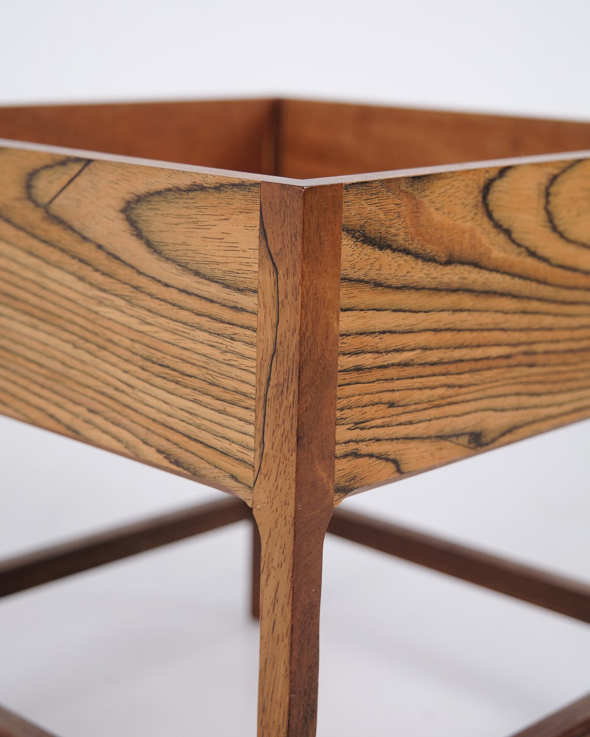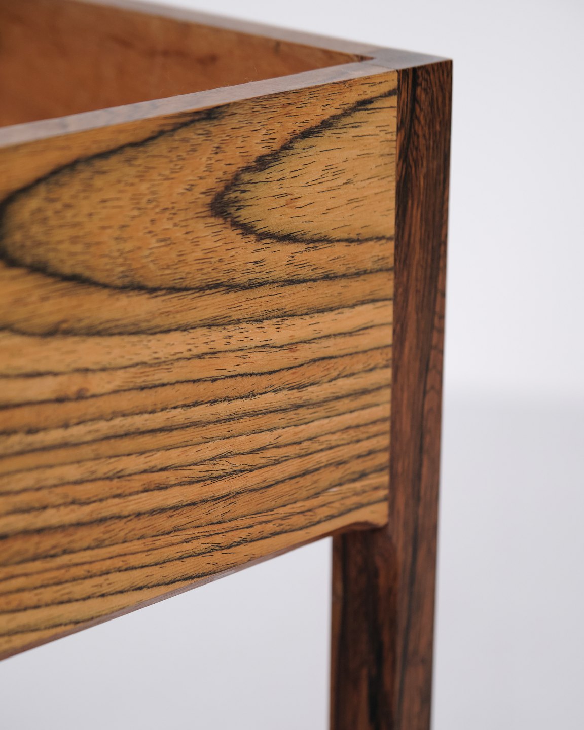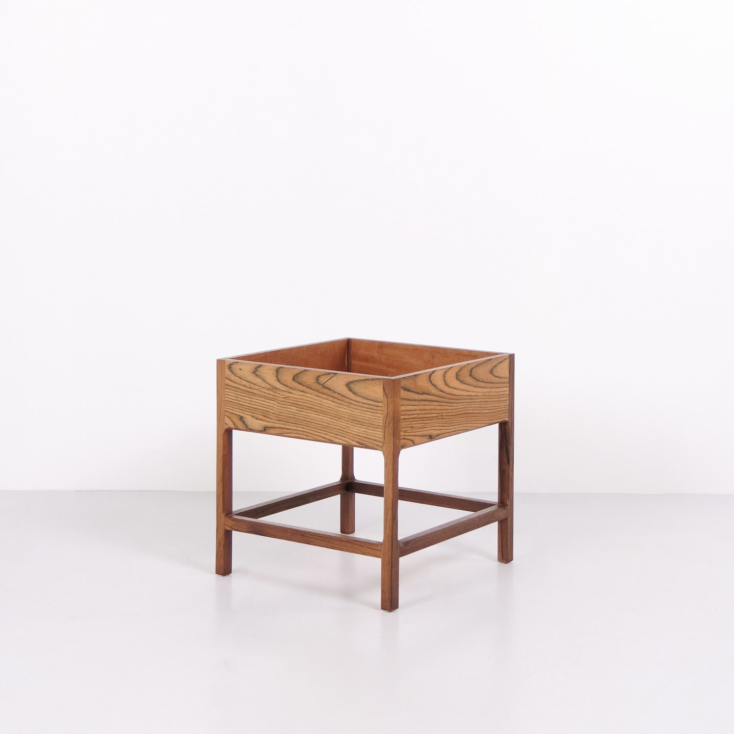 Blumenkasten entworfen von Kai Kristiansen für Aksel Kjersgaard in den 1960er Jahren. Gefertigt aus Palisander mit markanter Maserung und präzisen Tischlerdetails. Die quadratische Form und erhöhte Konstruktion spiegeln die klaren Linien des dänischen Modernismus wider. Aksel Kjersgaard war bekannt für hochwertige Fertigung und Zusammenarbeit mit führenden dänischen Designern. Geeignet als Pflanzgefäß, Wohnobjekt oder Aufbewahrungsmöbel.