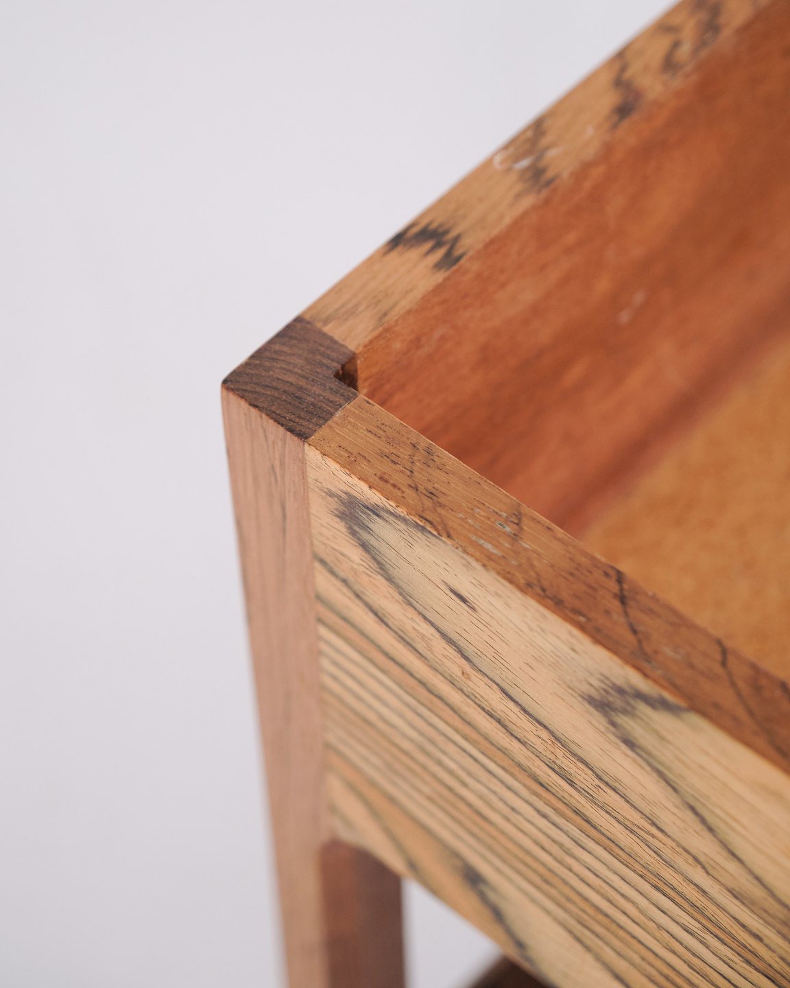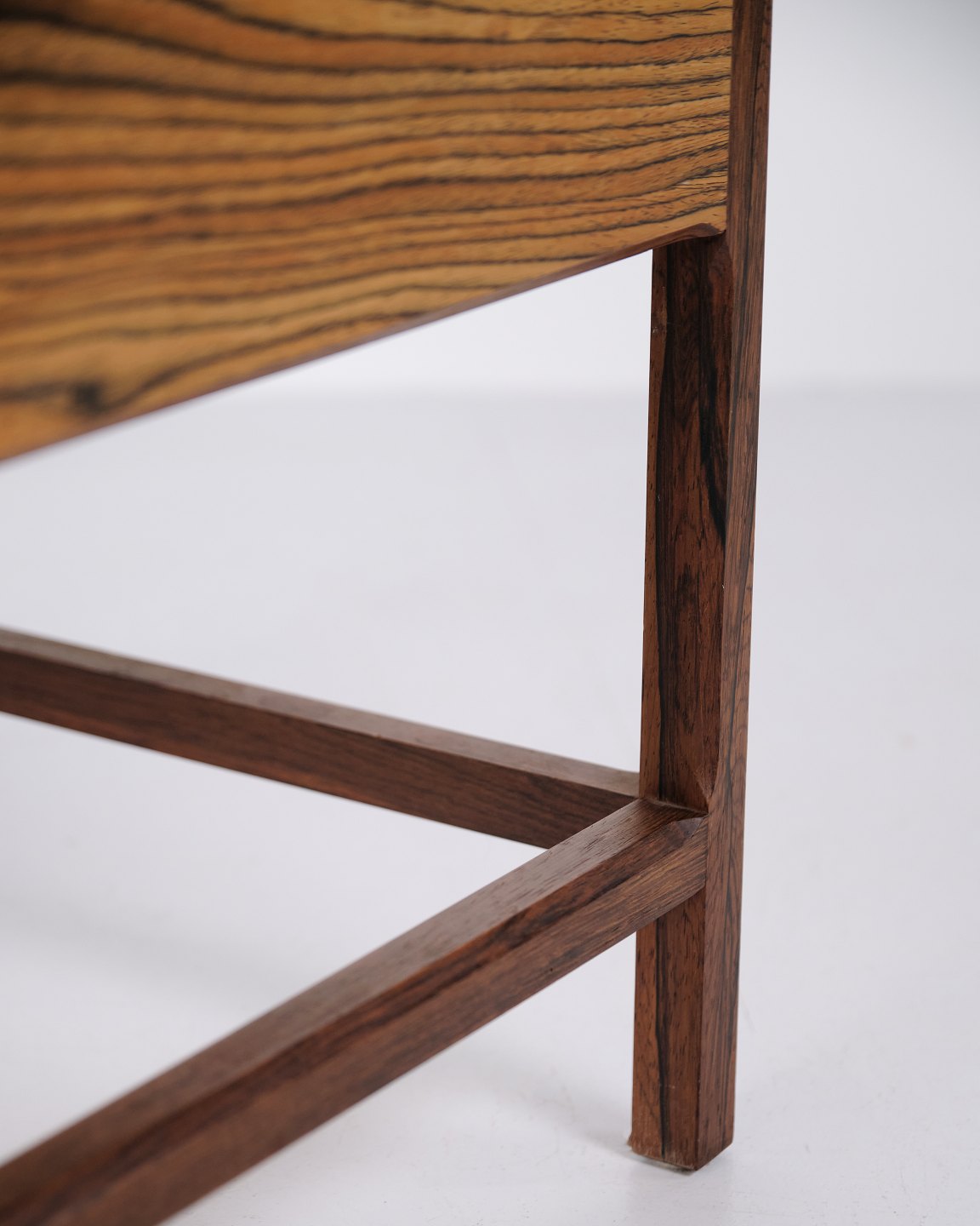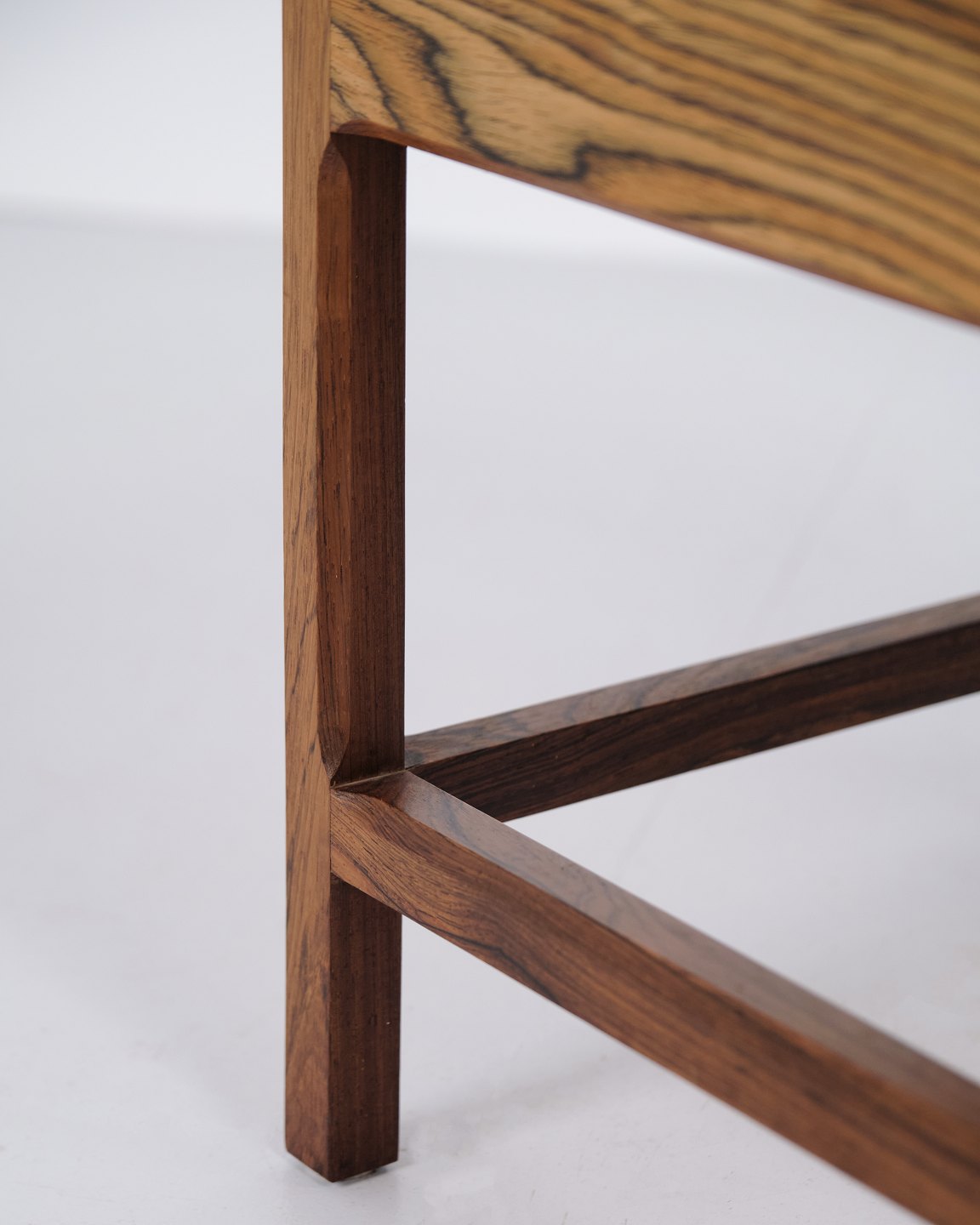 Blumenkasten entworfen von Kai Kristiansen für Aksel Kjersgaard in den 1960er Jahren. Gefertigt aus Palisander mit markanter Maserung und präzisen Tischlerdetails. Die quadratische Form und erhöhte Konstruktion spiegeln die klaren Linien des dänischen Modernismus wider. Aksel Kjersgaard war bekannt für hochwertige Fertigung und Zusammenarbeit mit führenden dänischen Designern. Geeignet als Pflanzgefäß, Wohnobjekt oder Aufbewahrungsmöbel.