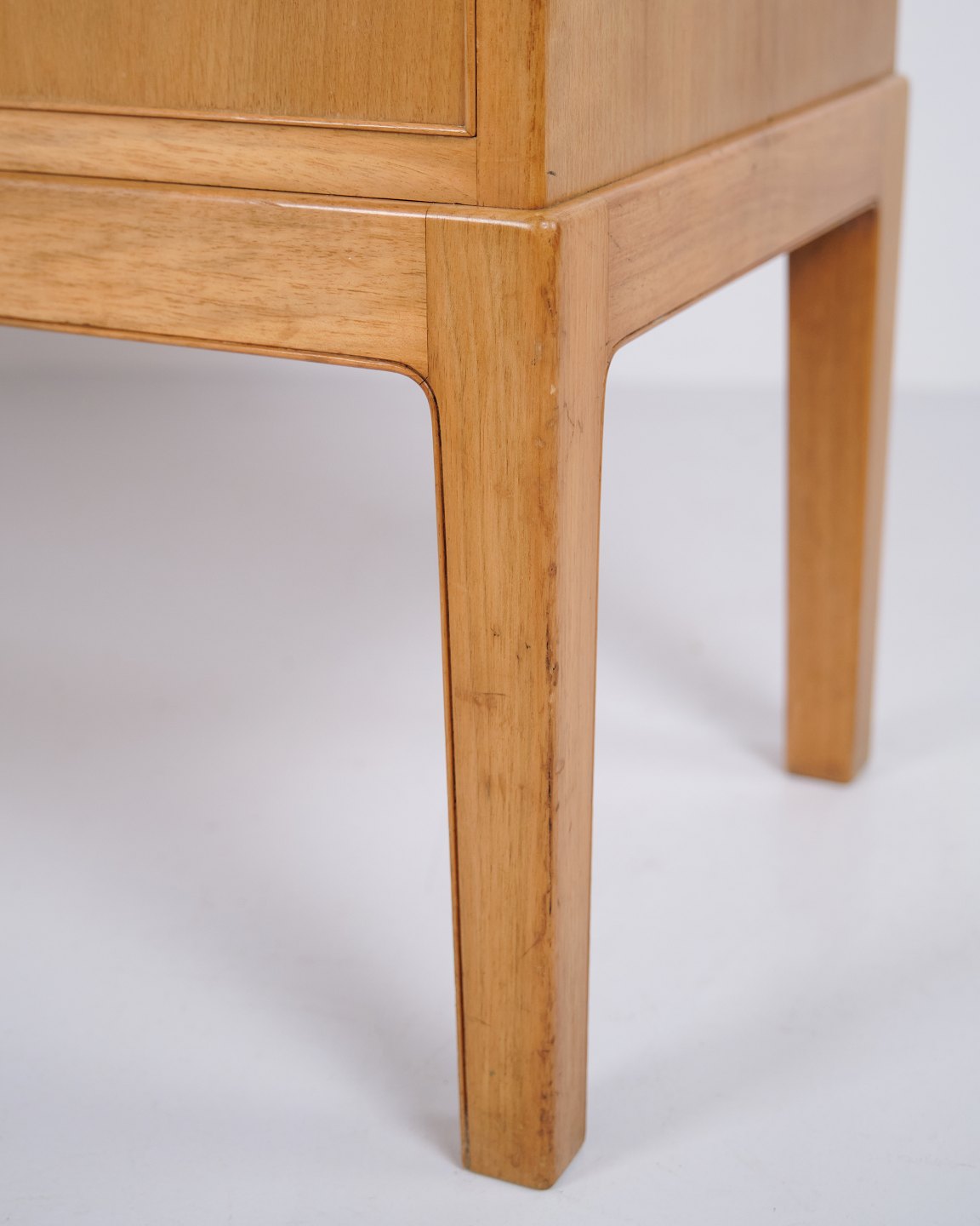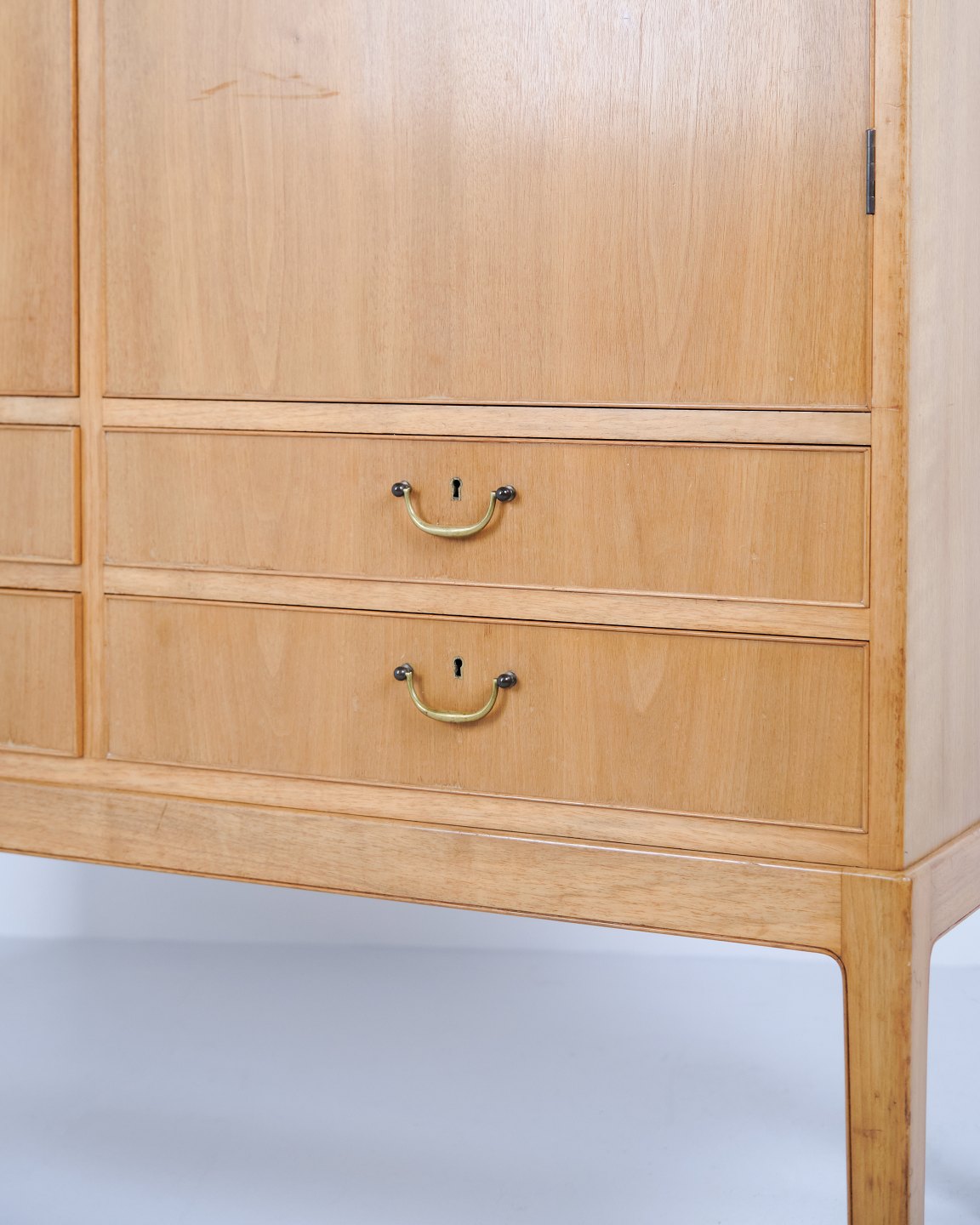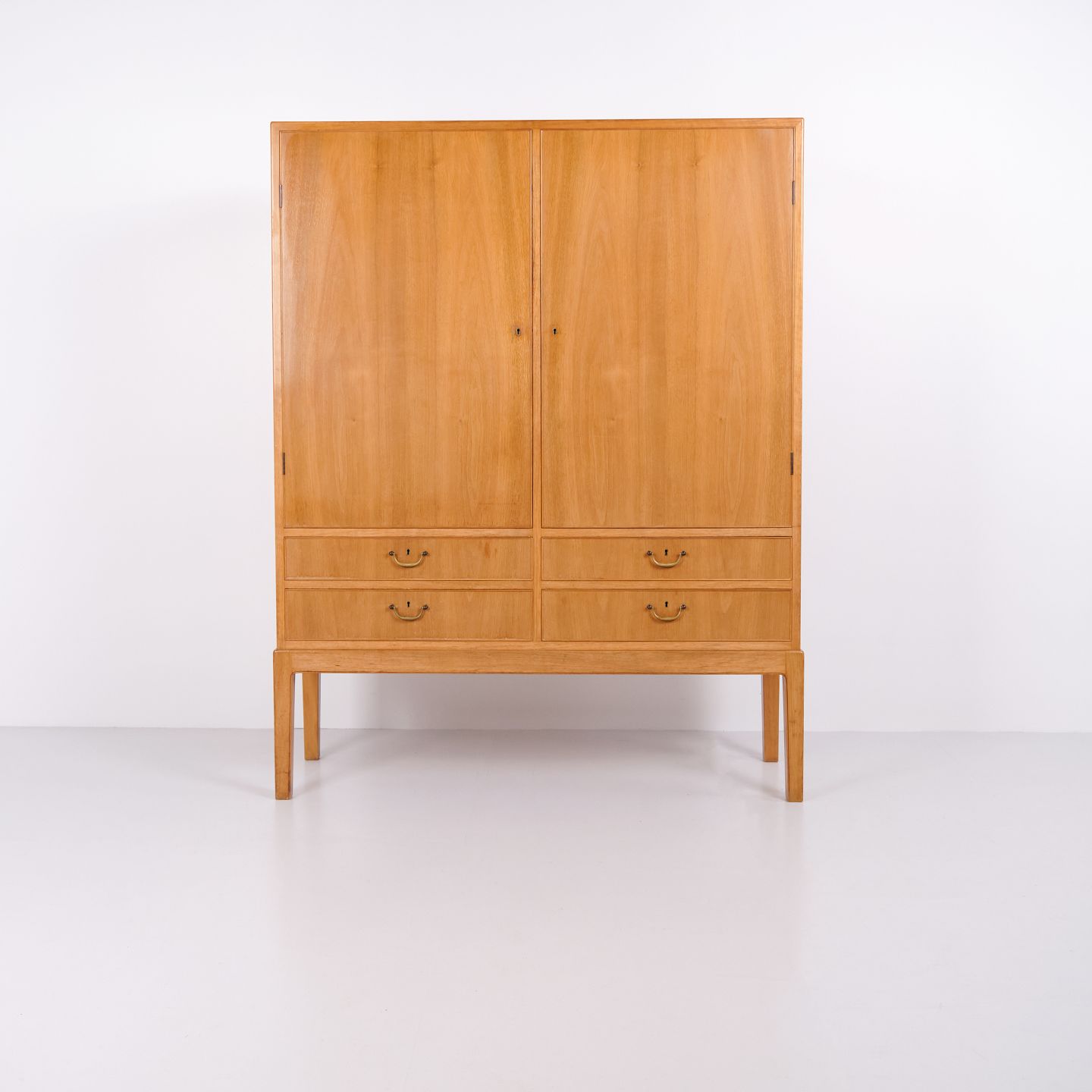 Anrichteschrank entworfen von Ole Wanscher und gefertigt von A.J. Iversen in den 1940er Jahren. Aus hellem Nussbaum mit eleganten Proportionen und präziser Tischlerarbeit gefertigt. Das Modell eignet sich zur Aufbewahrung von Porzellan, Glas, Besteck und Servierteilen mit praktischer Innenaufteilung und guter Tiefe. Ole Wanscher ist bekannt für Möbel mit klassischen Referenzen, feinen Linien und großem Materialverständnis, während A.J. Iversen zu den angesehensten dänischen Kunsttischlern des 20. Jahrhunderts zählt.