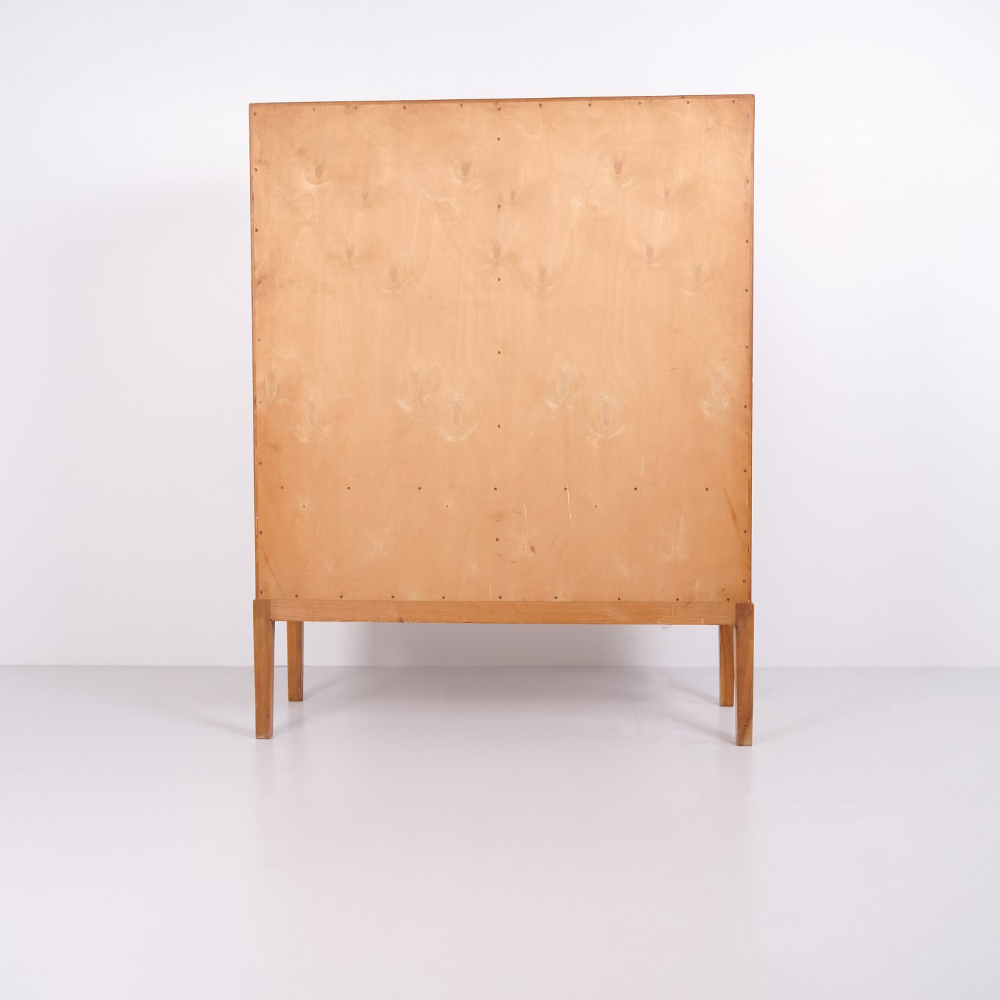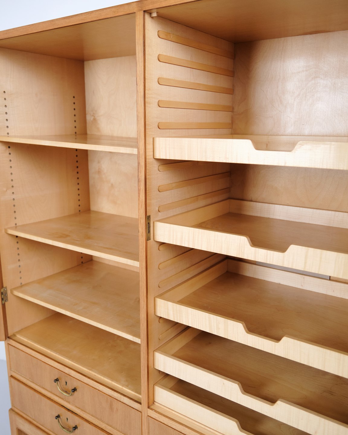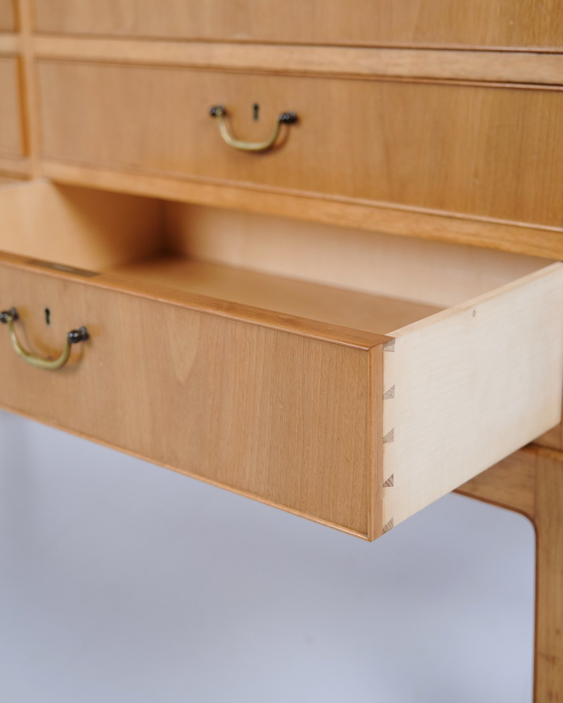 Anrichteschrank entworfen von Ole Wanscher und gefertigt von A.J. Iversen in den 1940er Jahren. Aus hellem Nussbaum mit eleganten Proportionen und präziser Tischlerarbeit gefertigt. Das Modell eignet sich zur Aufbewahrung von Porzellan, Glas, Besteck und Servierteilen mit praktischer Innenaufteilung und guter Tiefe. Ole Wanscher ist bekannt für Möbel mit klassischen Referenzen, feinen Linien und großem Materialverständnis, während A.J. Iversen zu den angesehensten dänischen Kunsttischlern des 20. Jahrhunderts zählt.