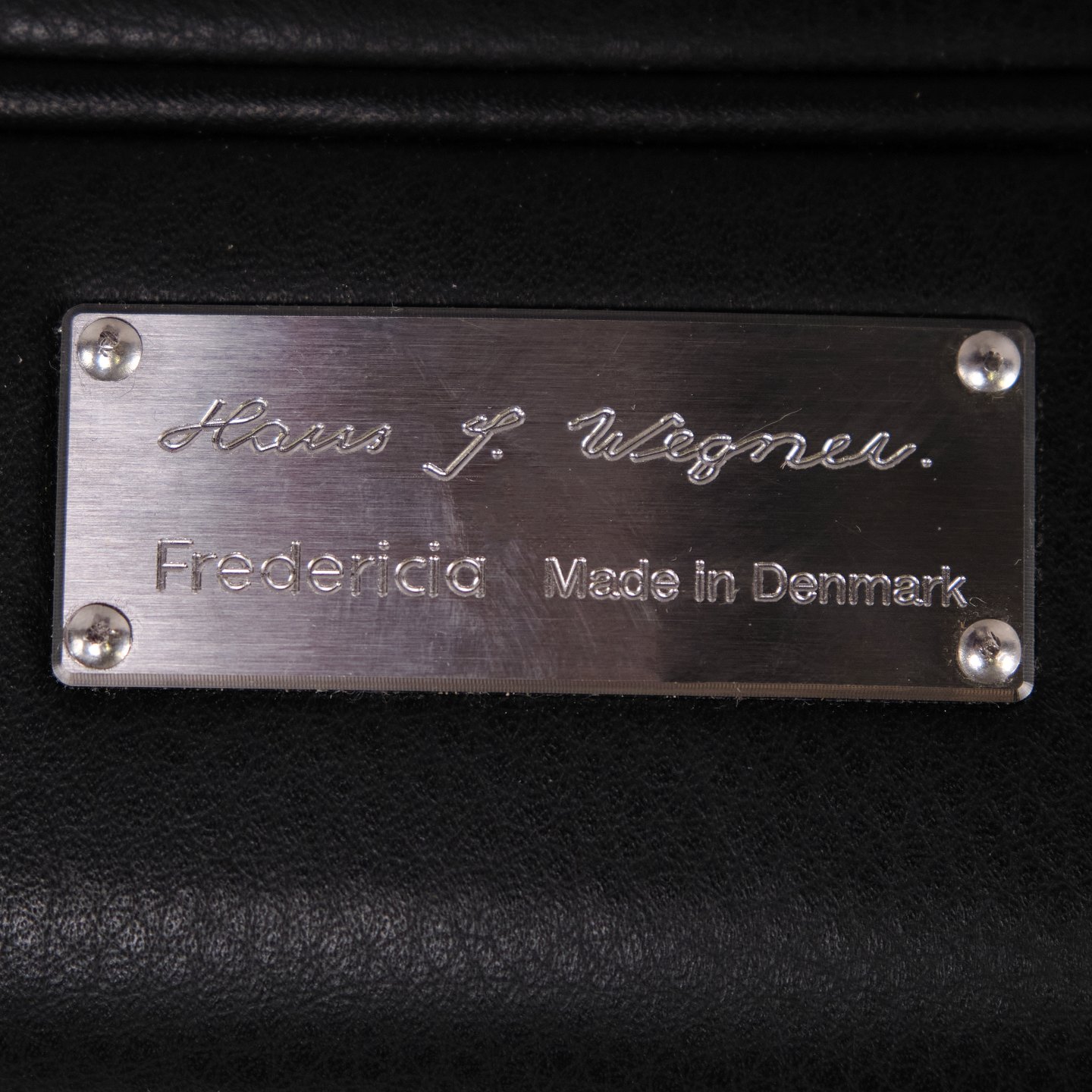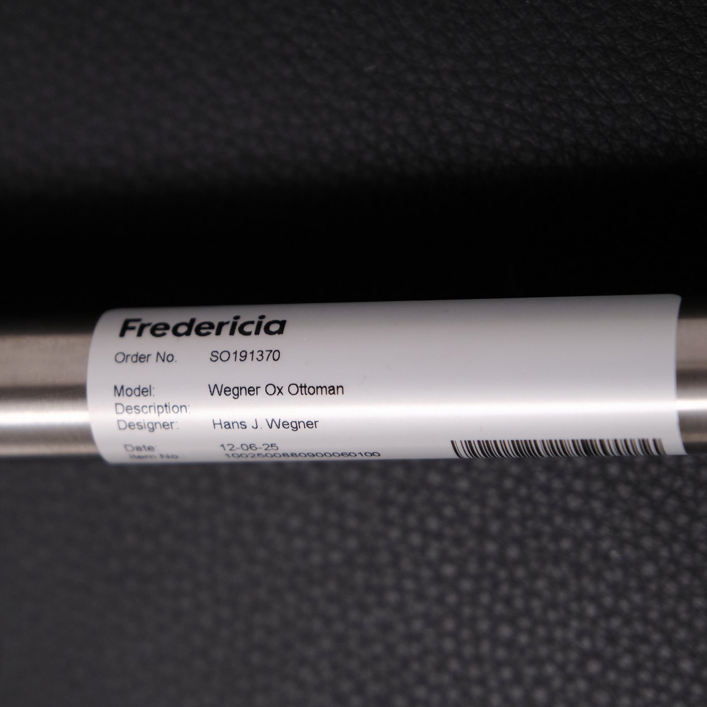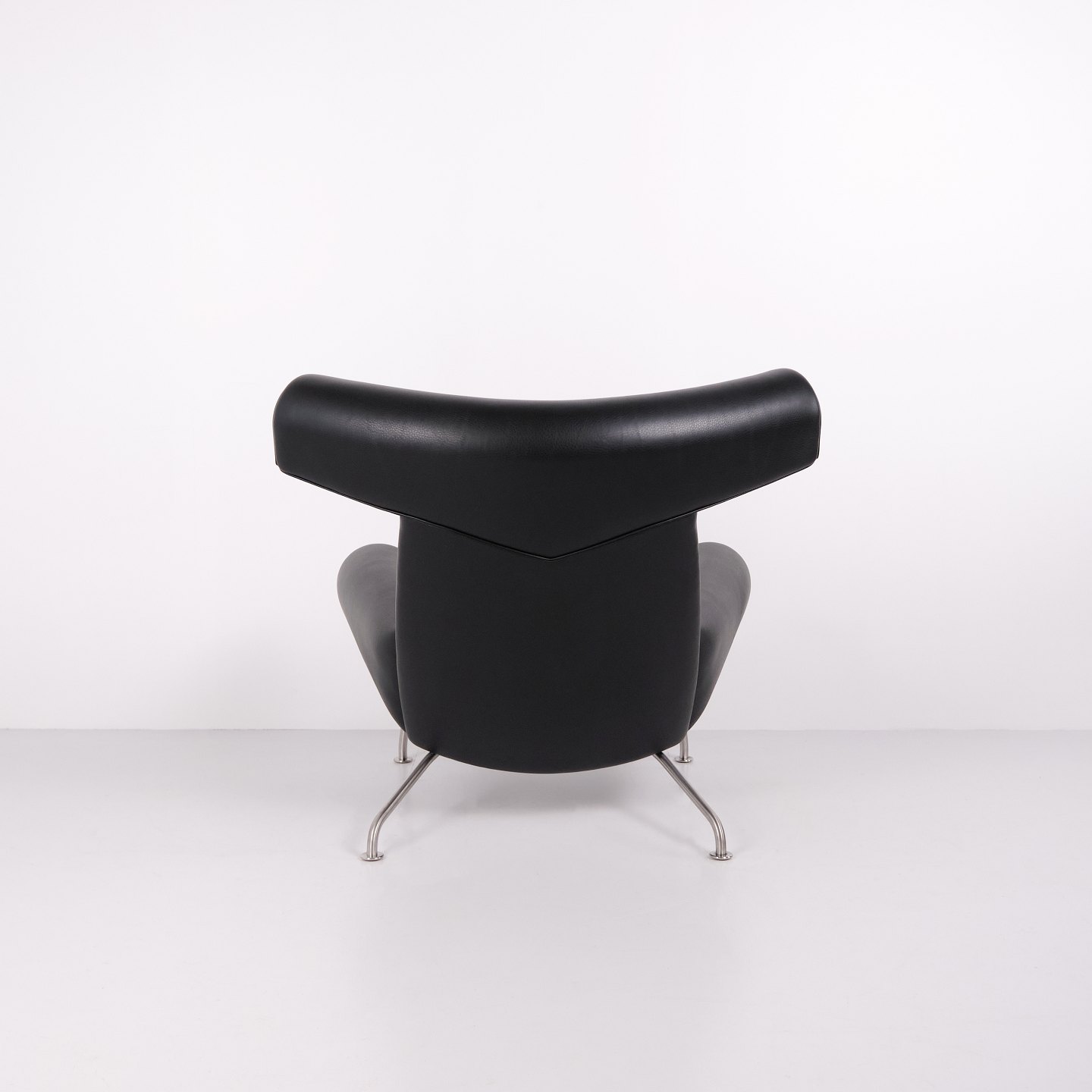 Ox Chair mit Hocker Modell EJ100 aus Schwarzem Leder von Hans J. Wegner für Fredericia Furniture