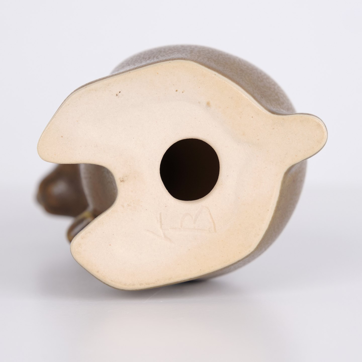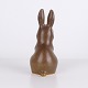 Große Hasenfigur von Knud Basse aus braun glasierter Keramik. Die Figur ist in aufrecht sitzender Form mit langen Ohren und fein handgemalten Augen modelliert.
