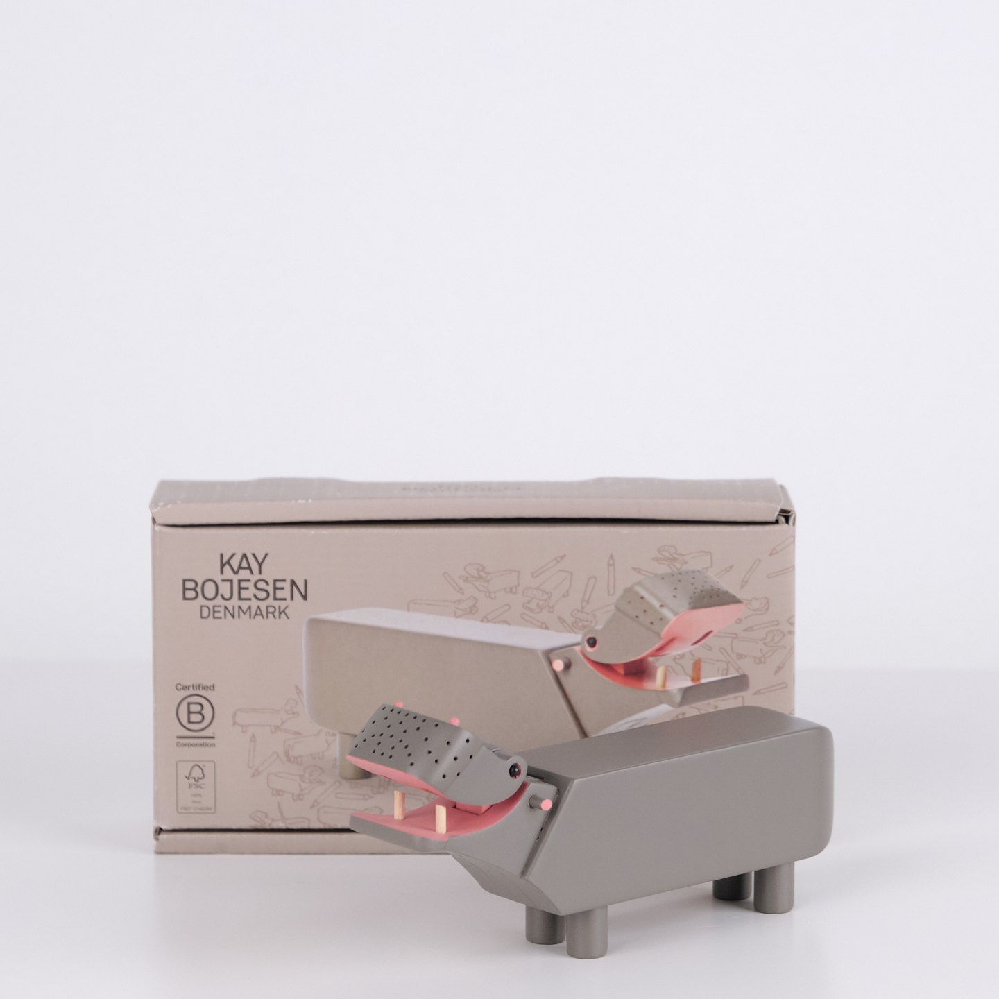 Lilliput Nilpferd entworfen von Kay Bojesen mit grauer Lackierung. Jubiläumsausgabe zur Feier des 70-jährigen Jubiläums des originalen Nilpferds von 1955. Gefertigt aus FSC-zertifiziertem Buchenholz und in kleinerem Format als die klassische Version hergestellt. Kay Bojesens Holztierfiguren zählen zu den bekanntesten Designobjekten des dänischen Designs und sind beliebte Sammlerstücke.