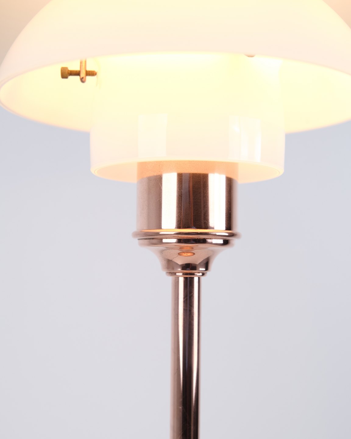 PH Tischlampe Modell PH 3½-2½ Limited Edition, entworfen von Poul Henningsen und hergestellt von Louis Poulsen. Die Lampe ist aus Kupfer gefertigt, mit oberem Schirm aus Kupfer sowie zwei unteren Schirmen aus weißem Opalglas. Bei dieser Ausführung ist nur der obere Kupferschirm enthalten. Das Modell wurde nur für einen begrenzten Zeitraum im Jahr 2015 produziert und verkauft und ist daher besonders begehrt bei Sammlern von PH Lampen und dänischem Lichtdesign.