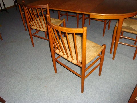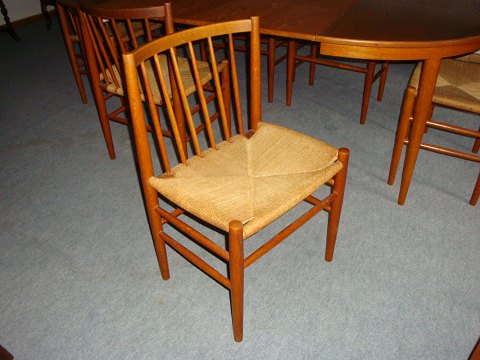 SolgtSpisebord med 2 tillægsplader i egetræ + 6 stole med flet Børge Mogensen i fin stand