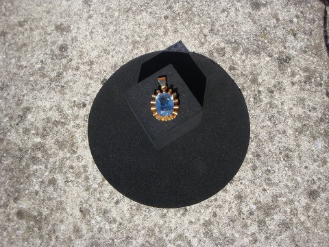 SolgtVedhæng i 14 kt med flot lyseblå sten designet af O.W fra 1960erne.
